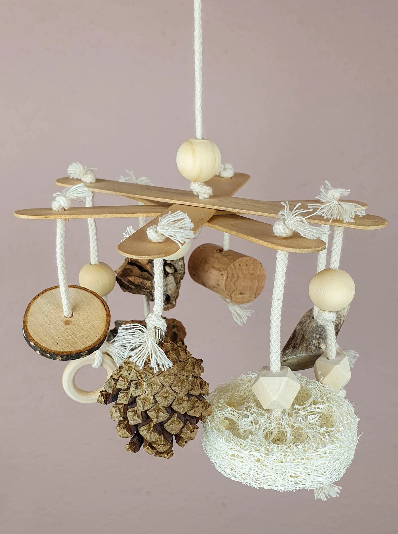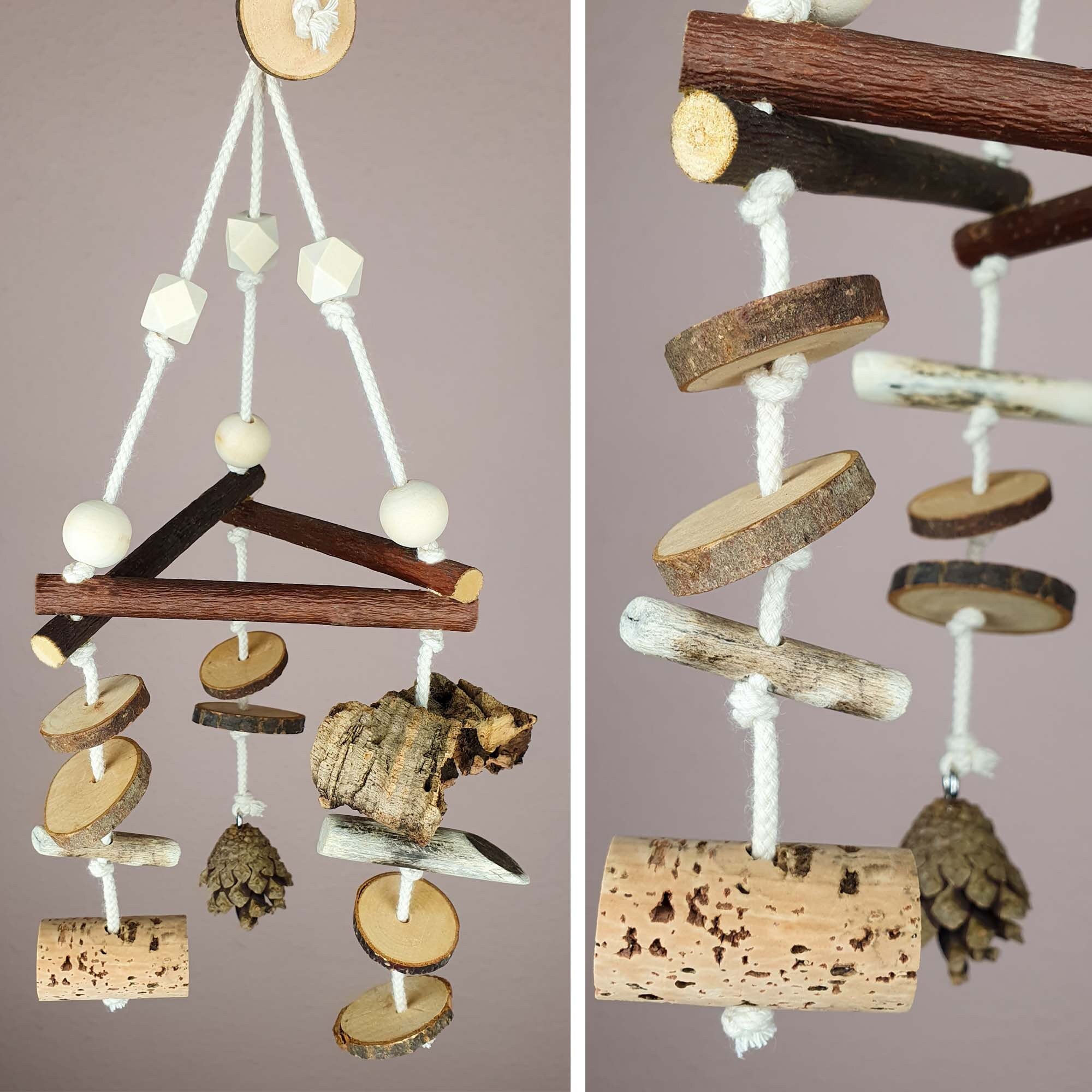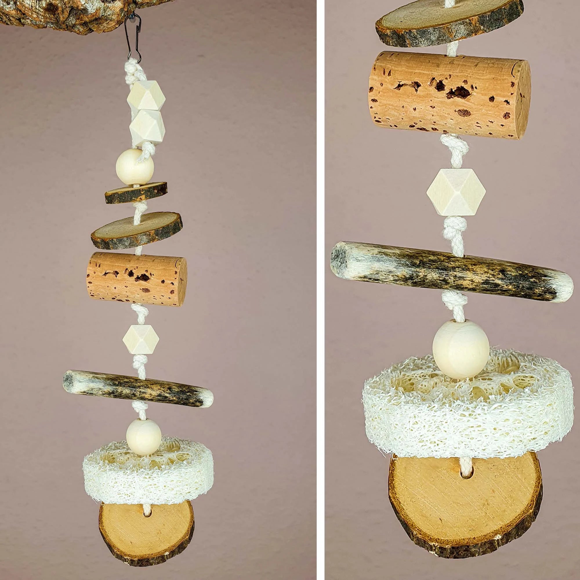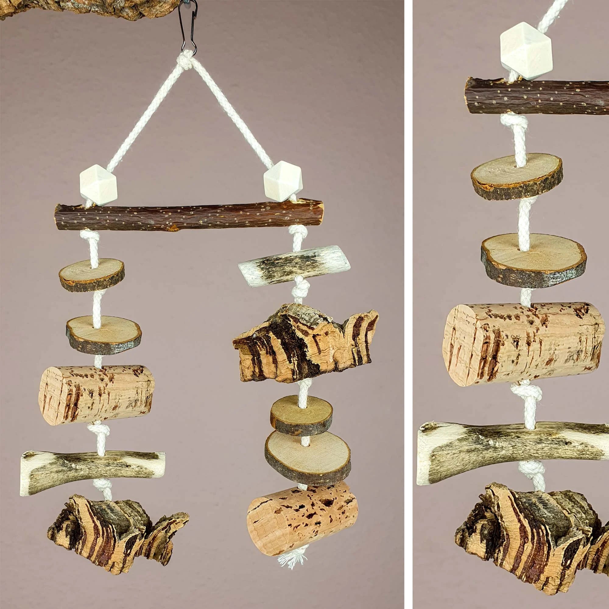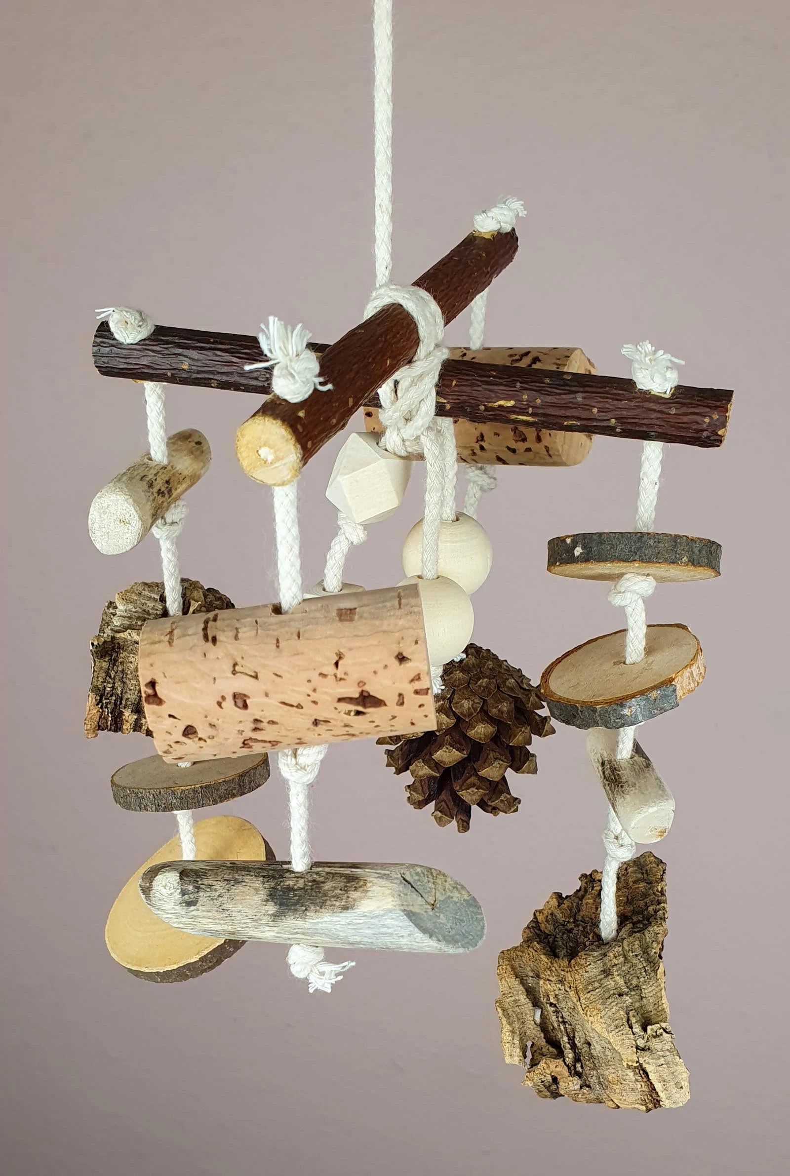 Knabber-Spielzeug / Mobiles für Vögel aus Natur-Holz
