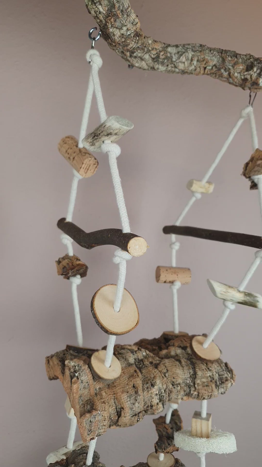 Auf den beiden Naturholz-Sitzstangen haben sie die Möglichkeit zu Schaukeln und ihren Gleichgewichtssinn zu trainieren