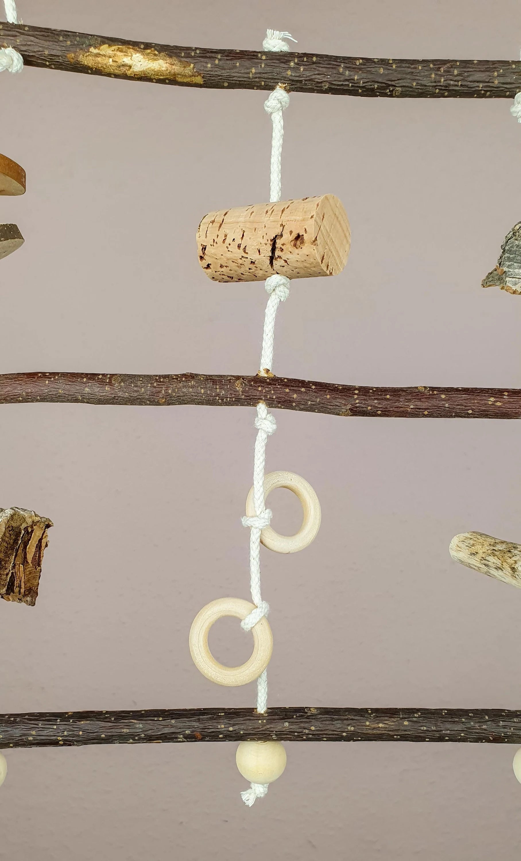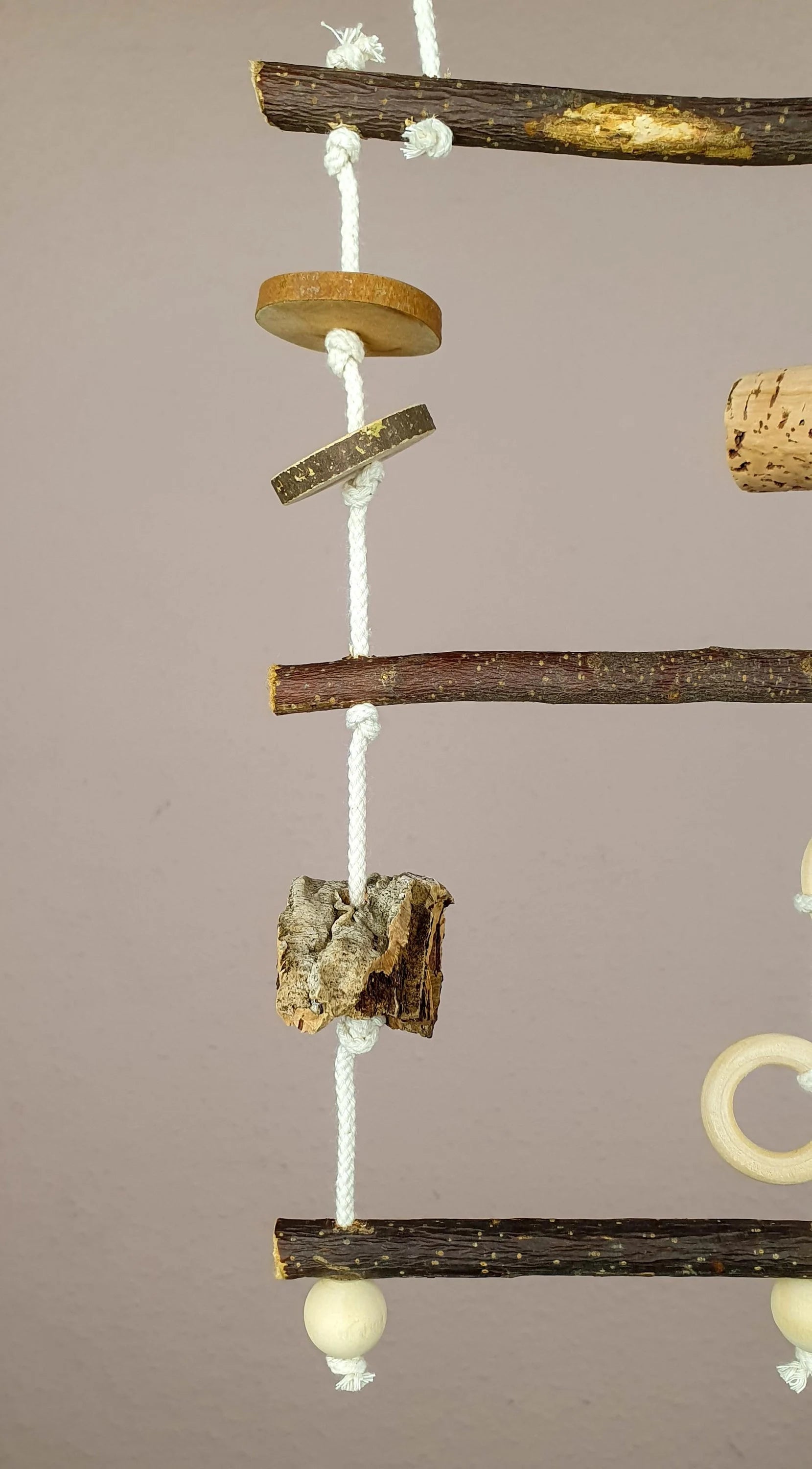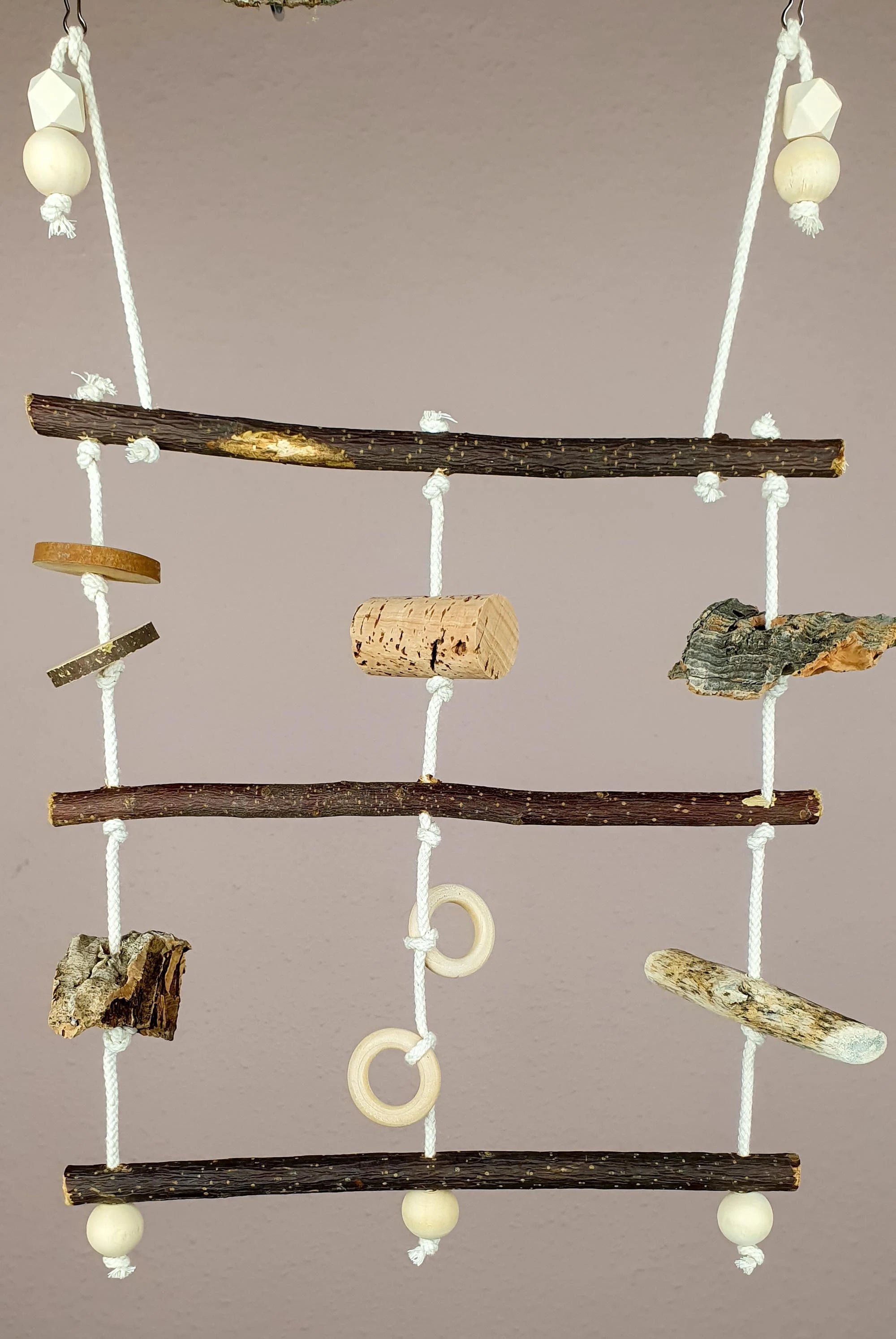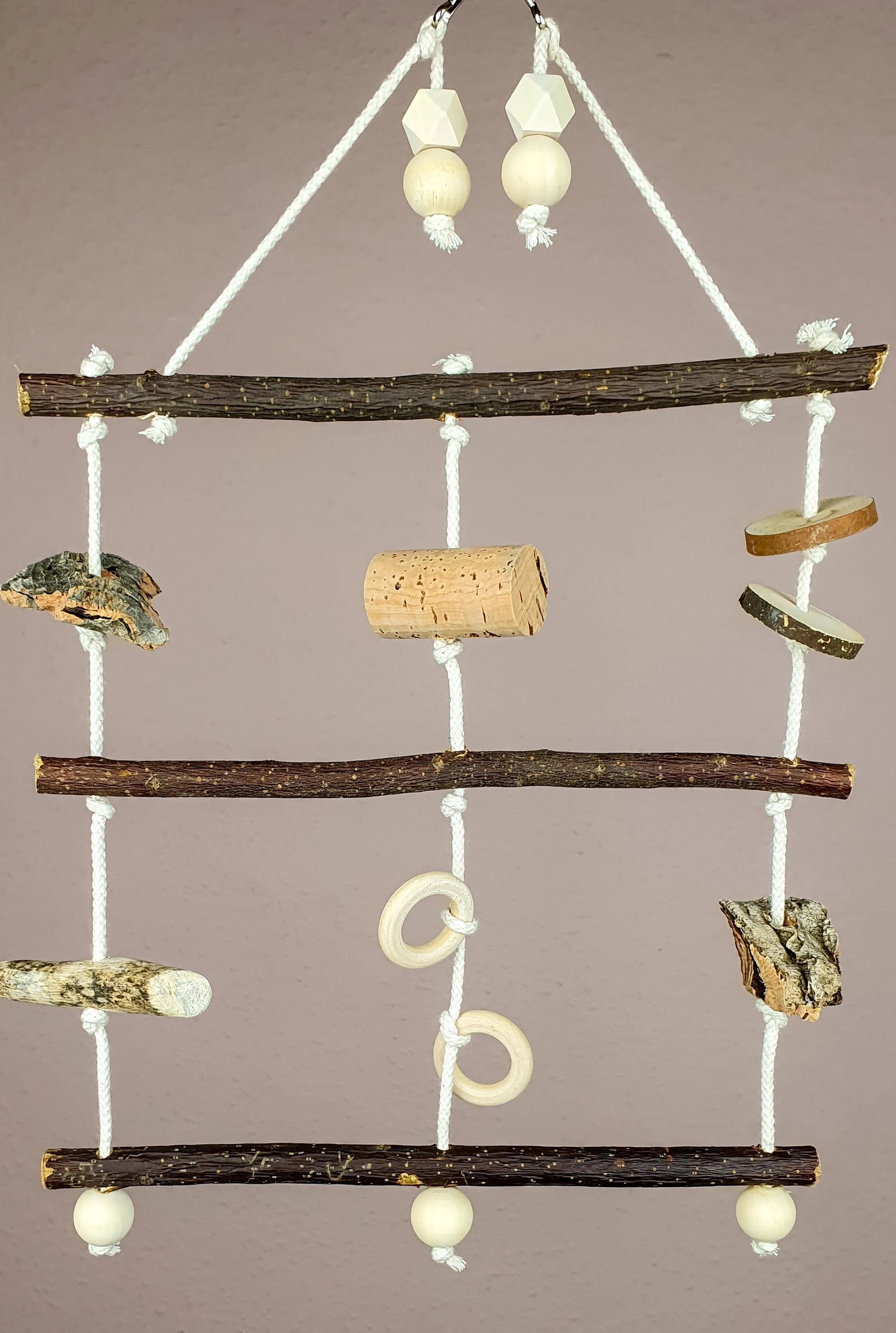 Durch die Naturhölzer werden Vögel-Füßchen trainiert und der Spaß kommt auch nicht zu kurz.