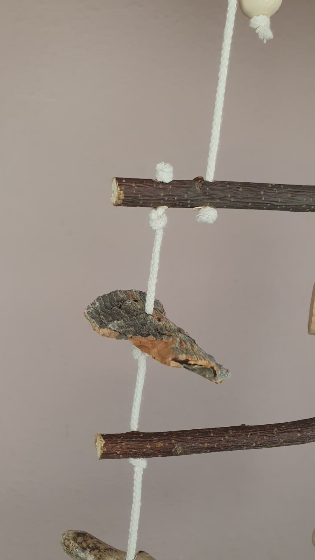 Vogelschaukel / Kletter-Netz aus Natur-Holz & Baumwollseil 700-729