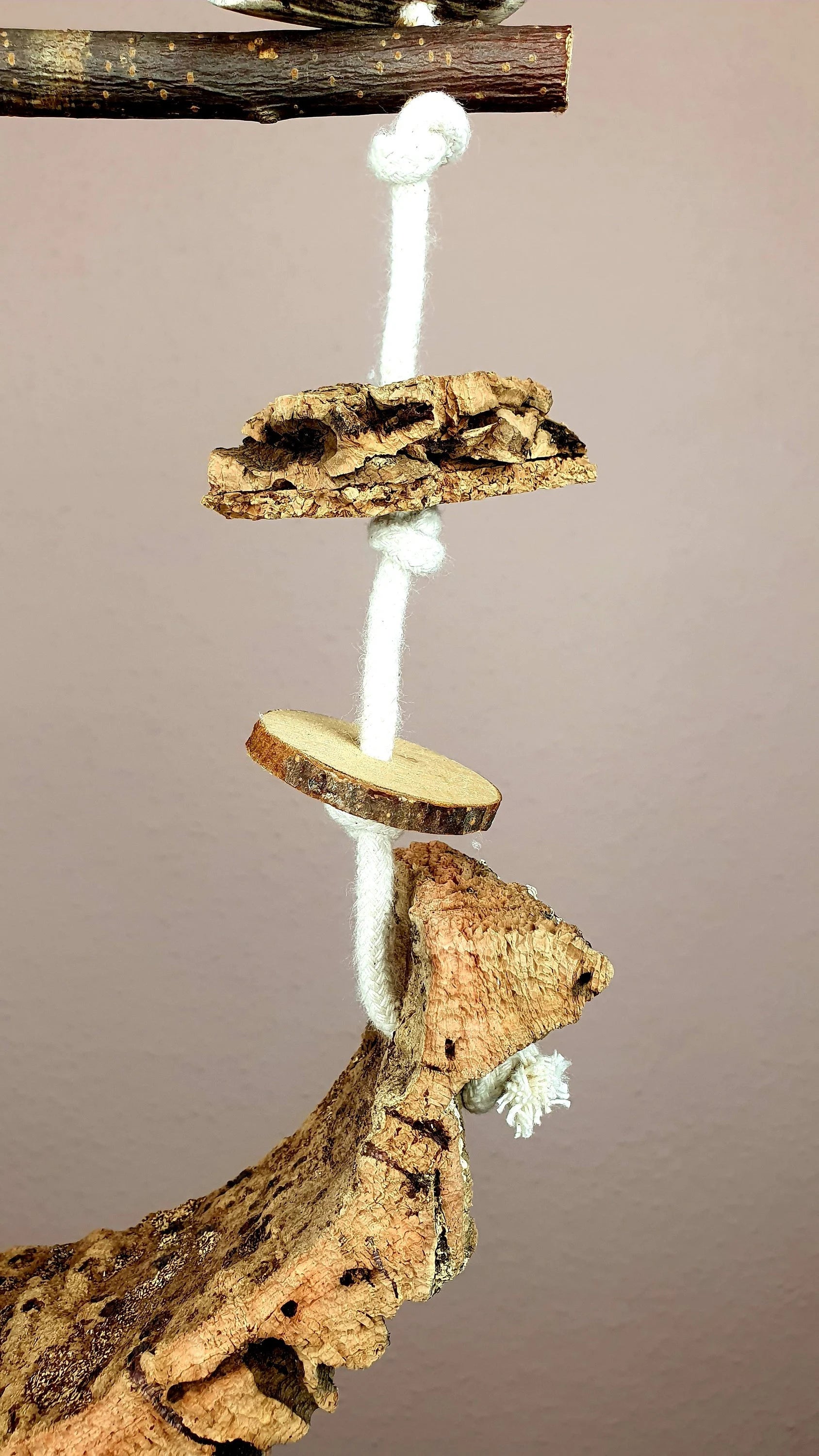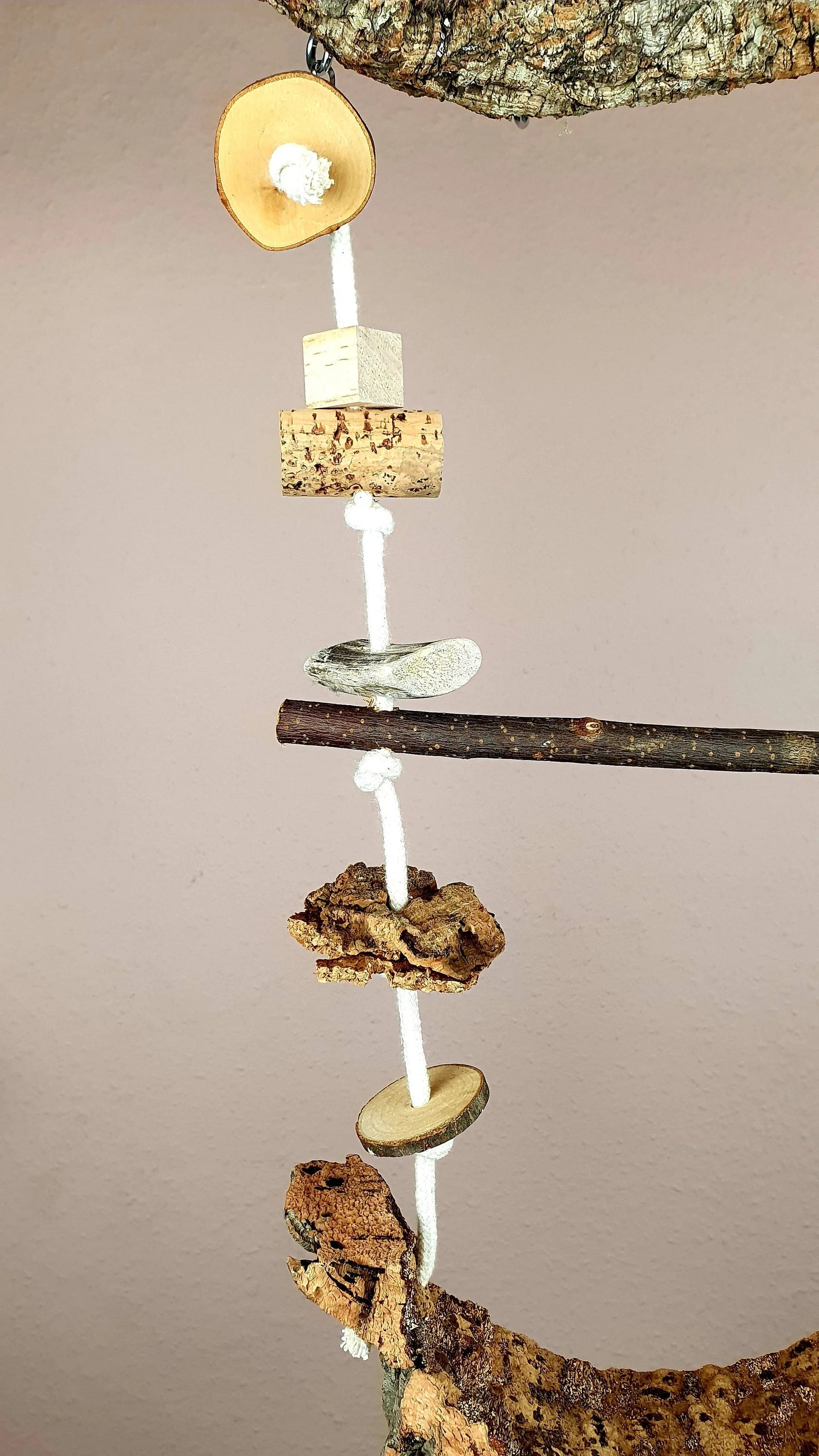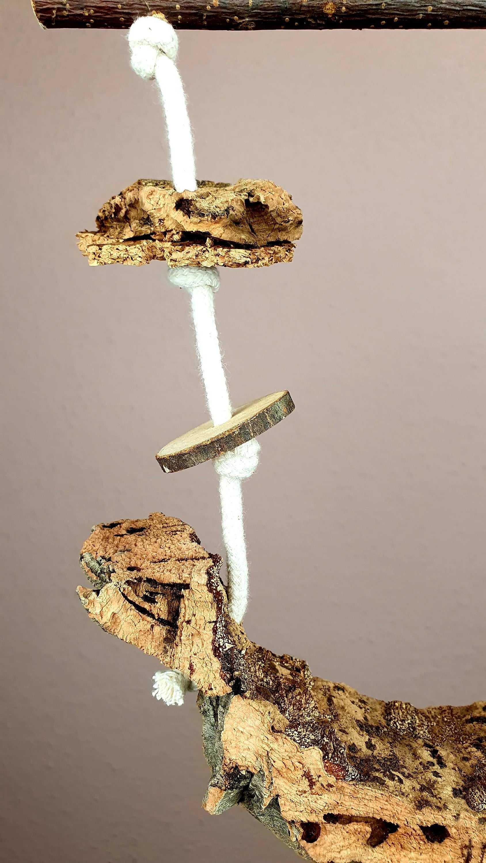 Die Korkrinde wurde bereits gereinigt. Das weiche Baumwollseil ist besonders für Vögel geeignet.