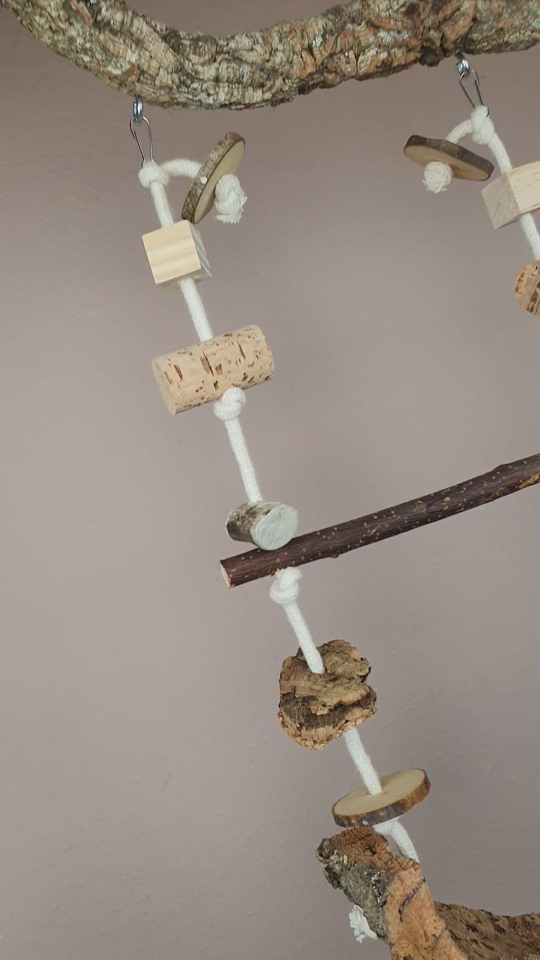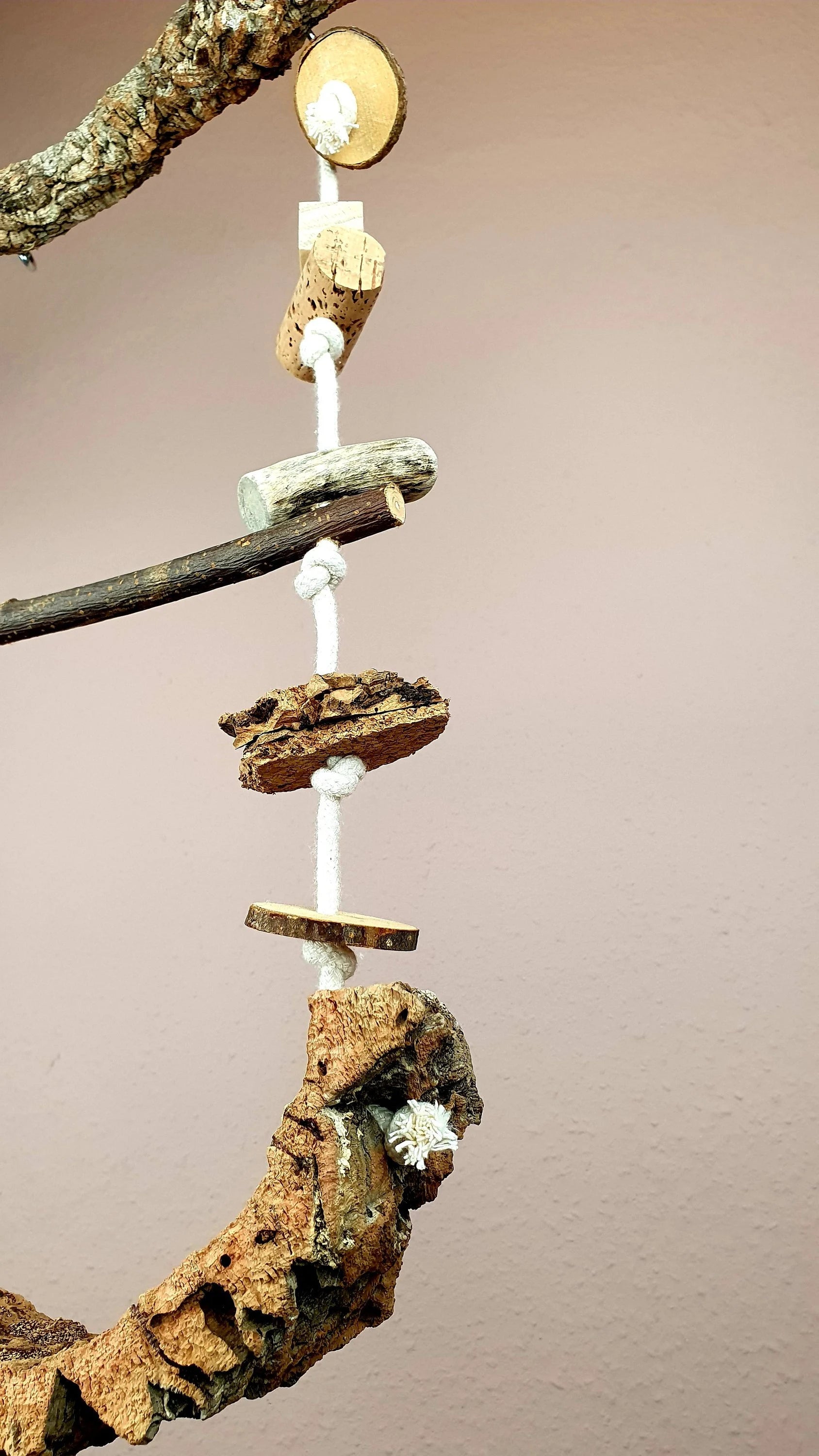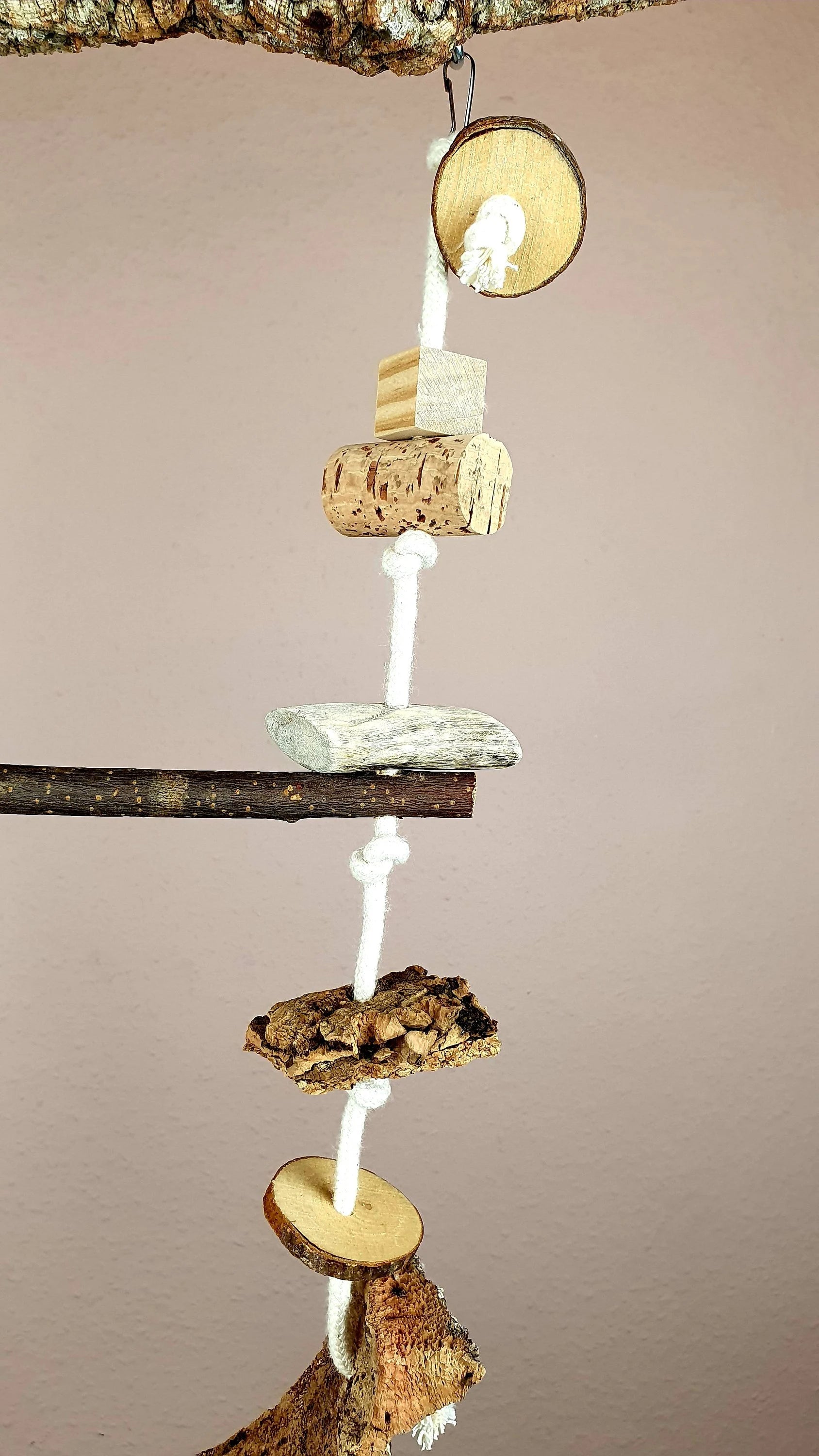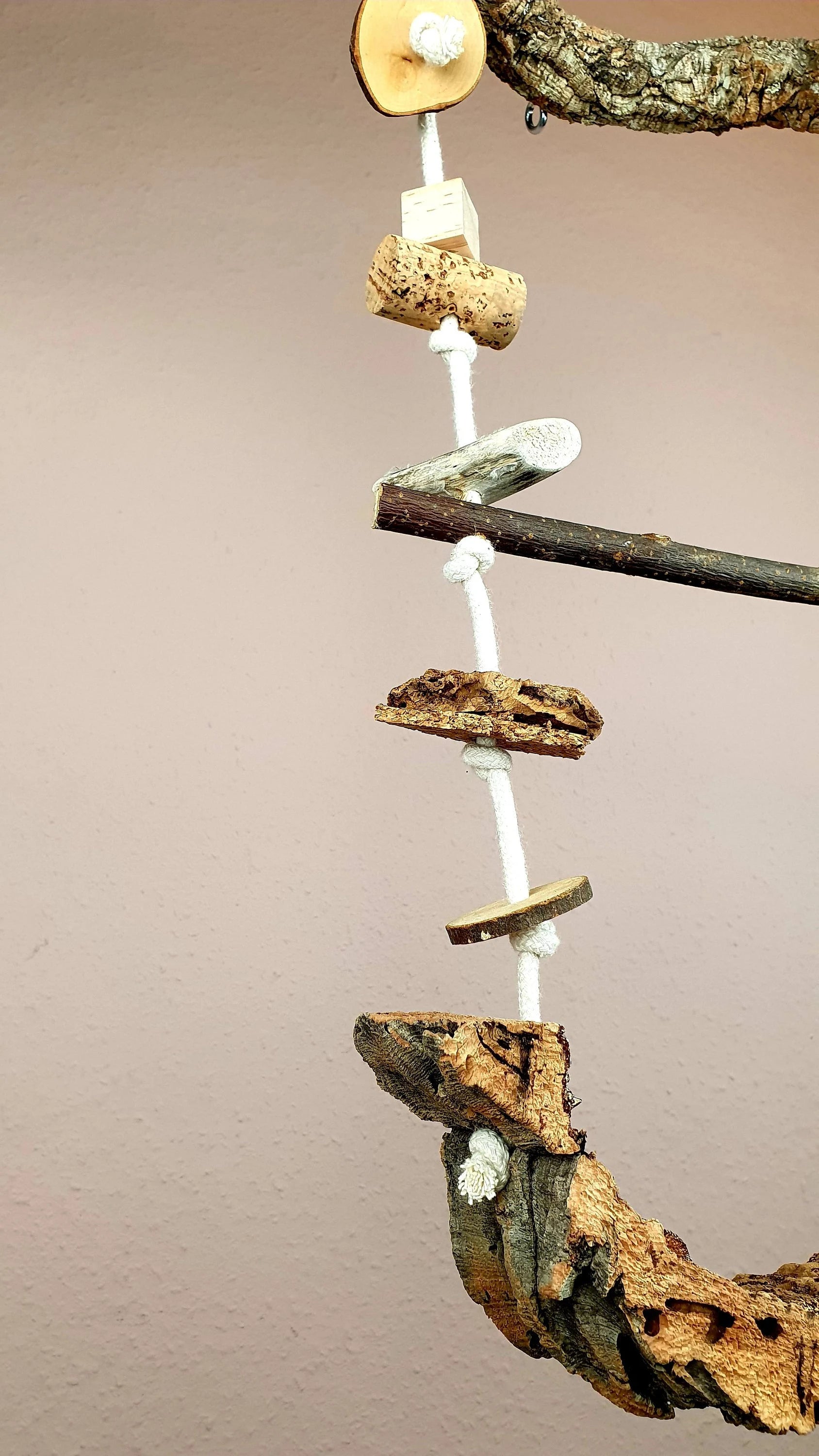 Die Korkrinde wurde bereits gereinigt. Das weiche Baumwollseil ist besonders für Vögel geeignet.