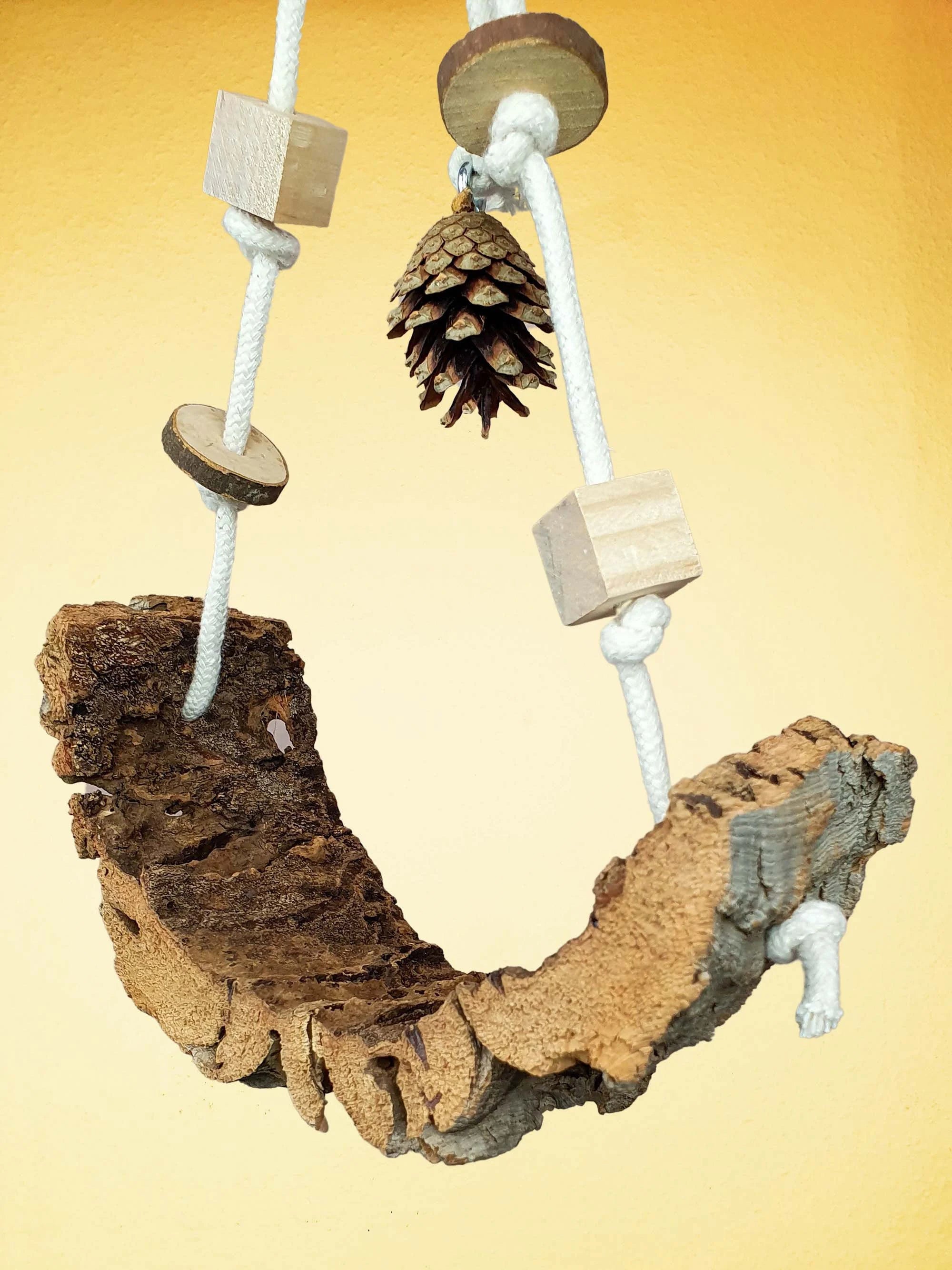 Mit der halbrunden Kork-Rinden-Schaukel werden Ihre Lieblinge einiges erleben.