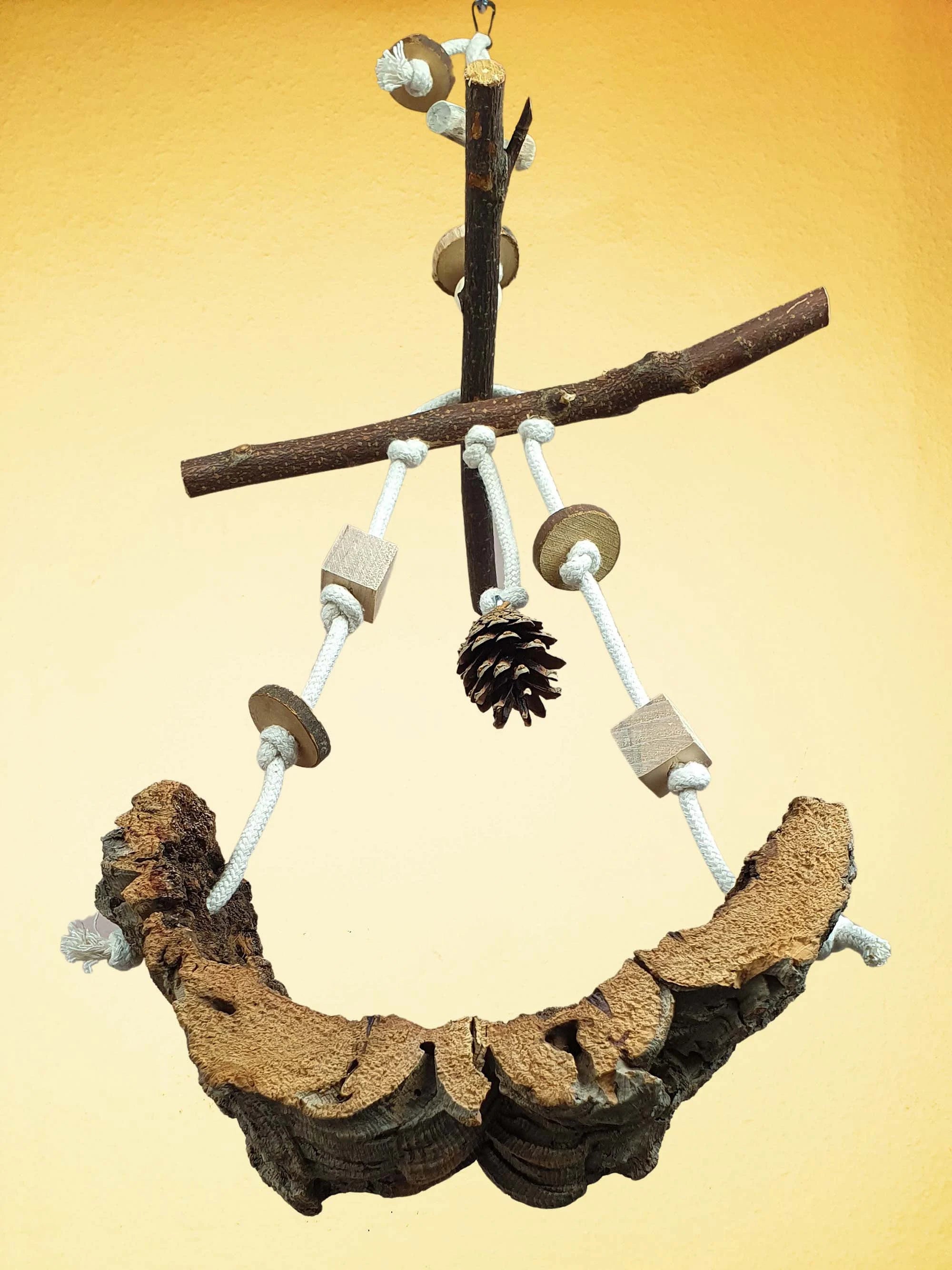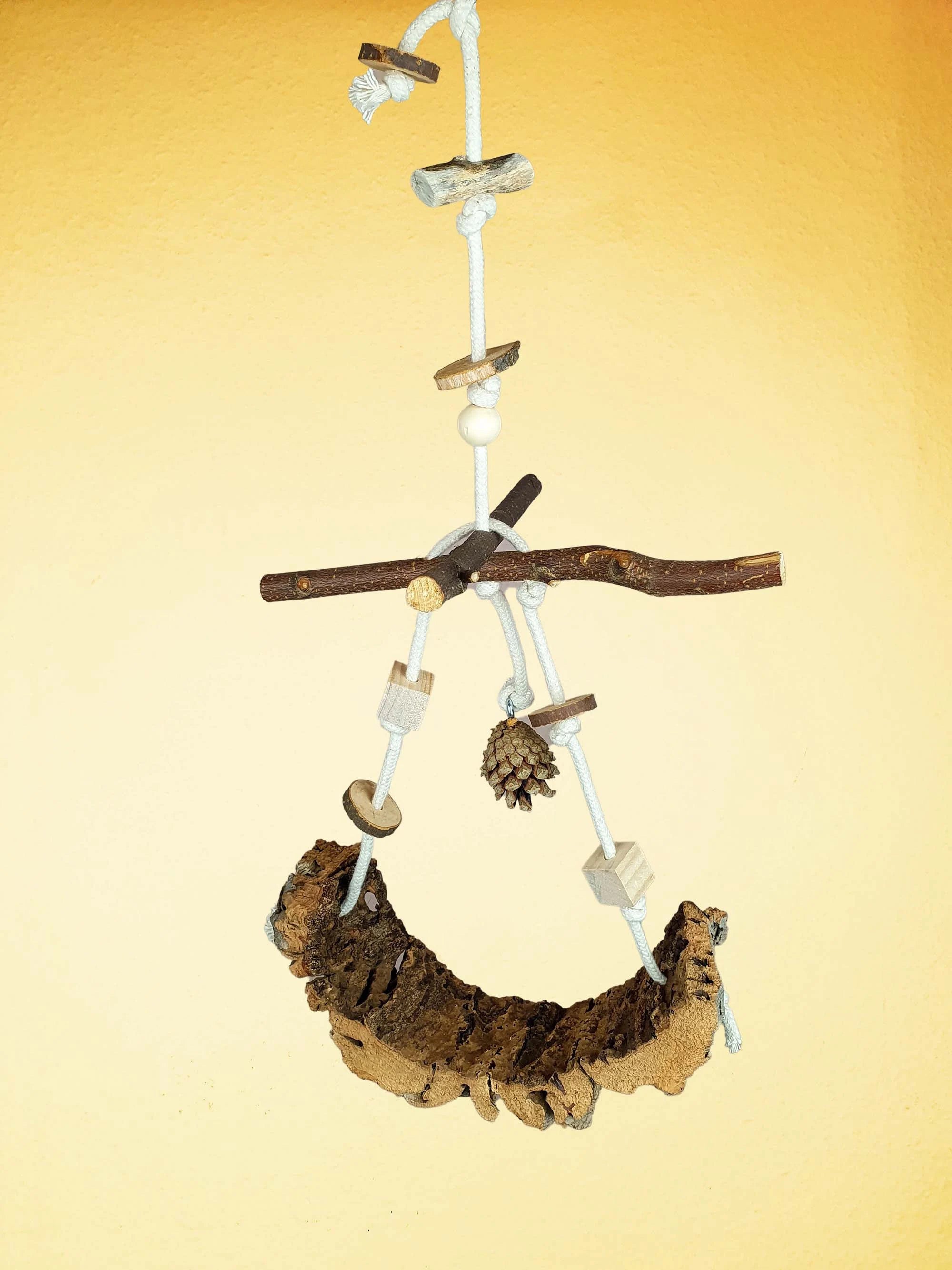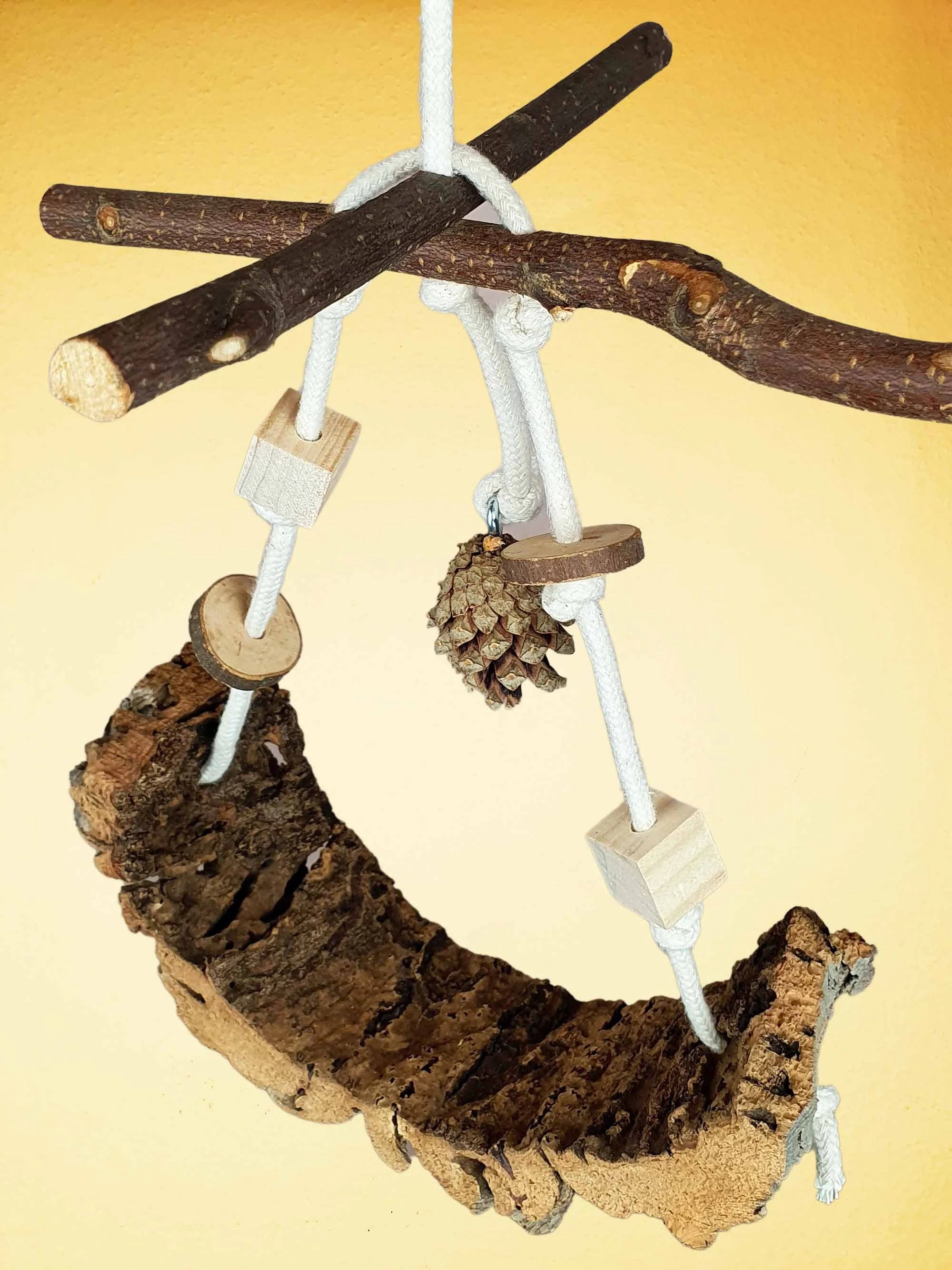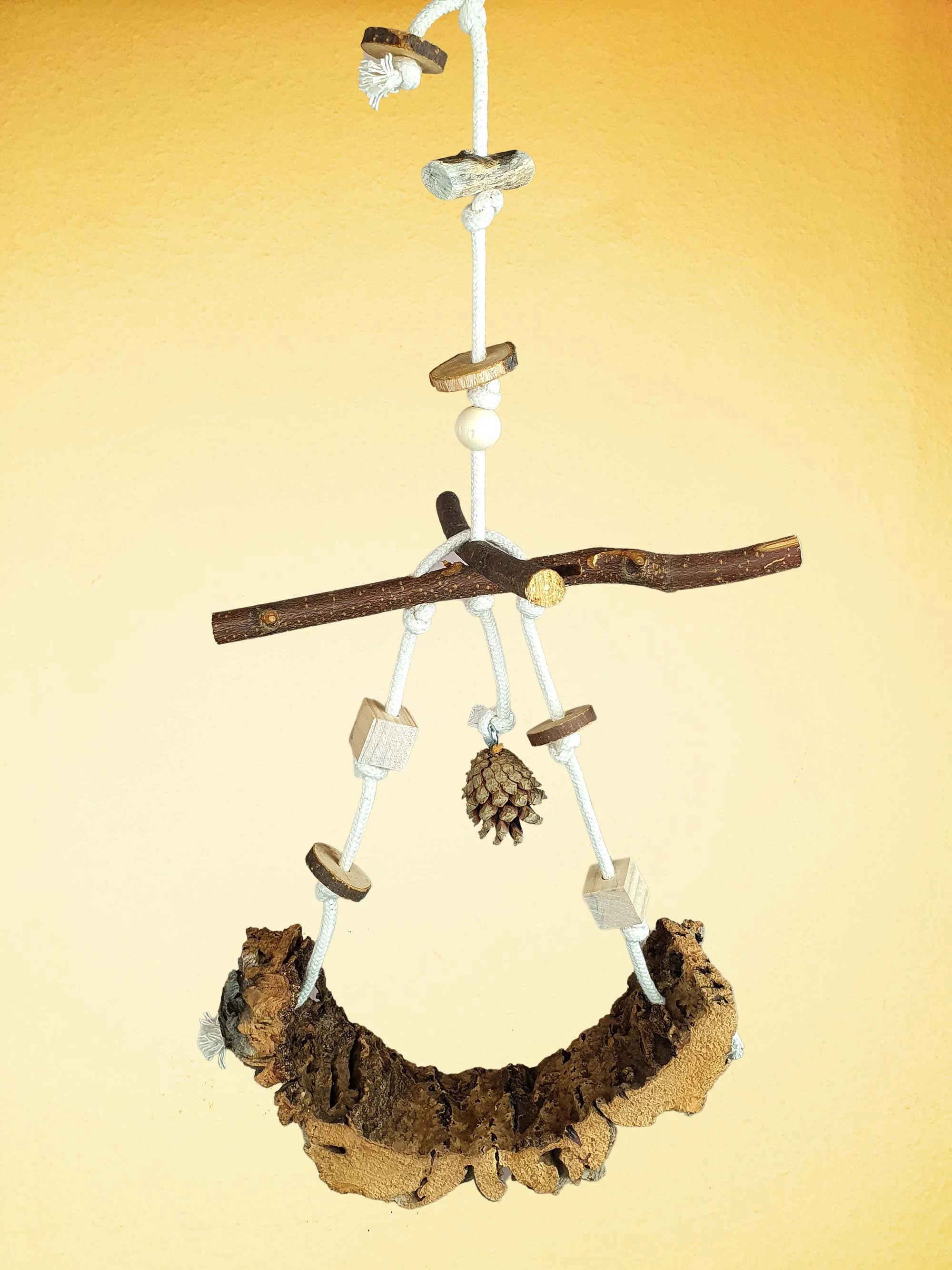 Große Korkrinden-Vogel-Schaukel Halbrund mit Naturholz-Sitzstangen