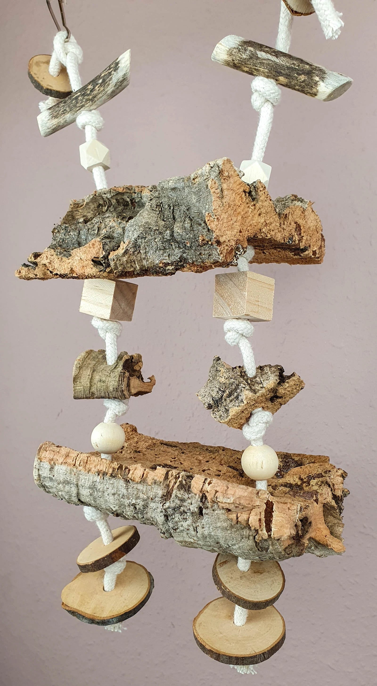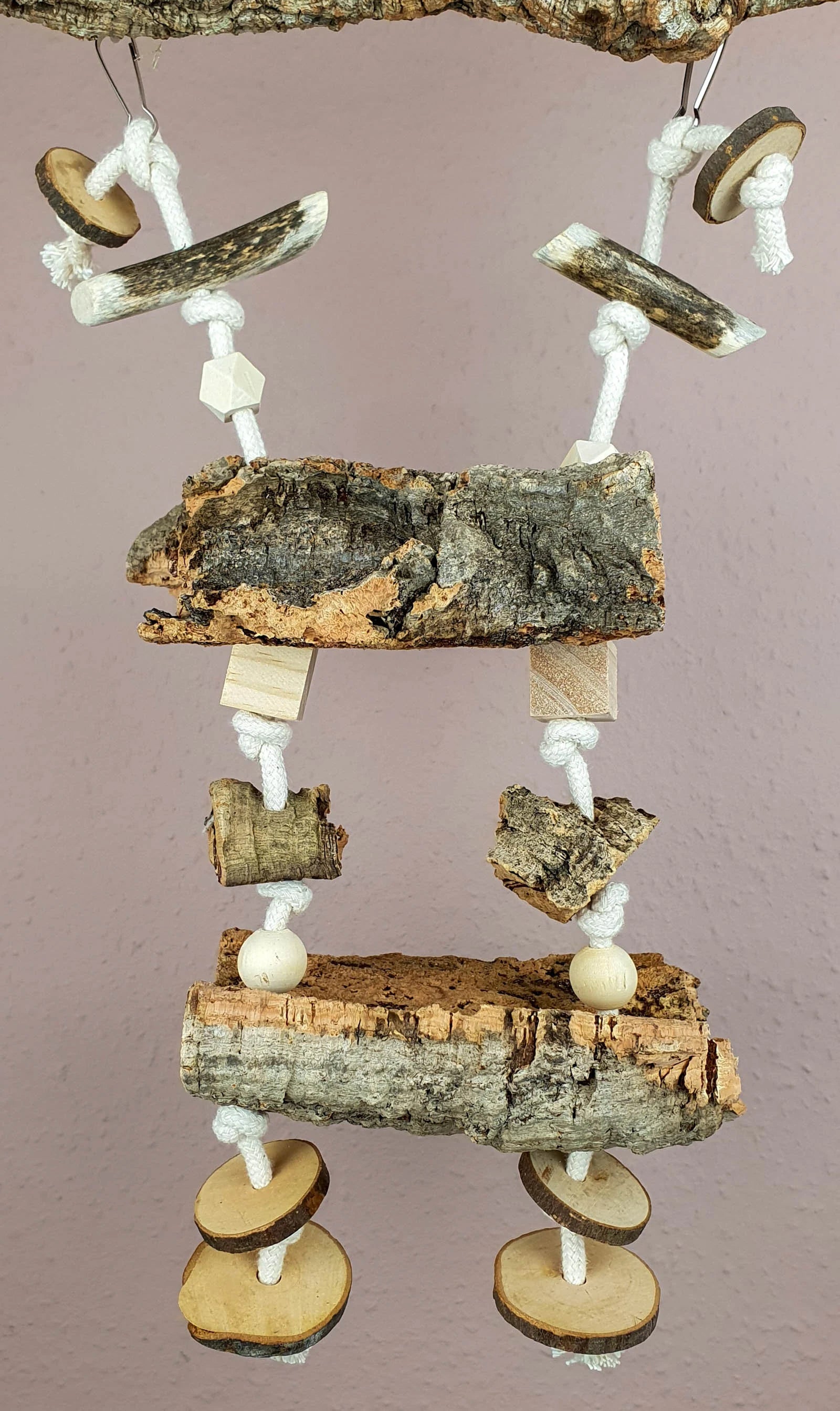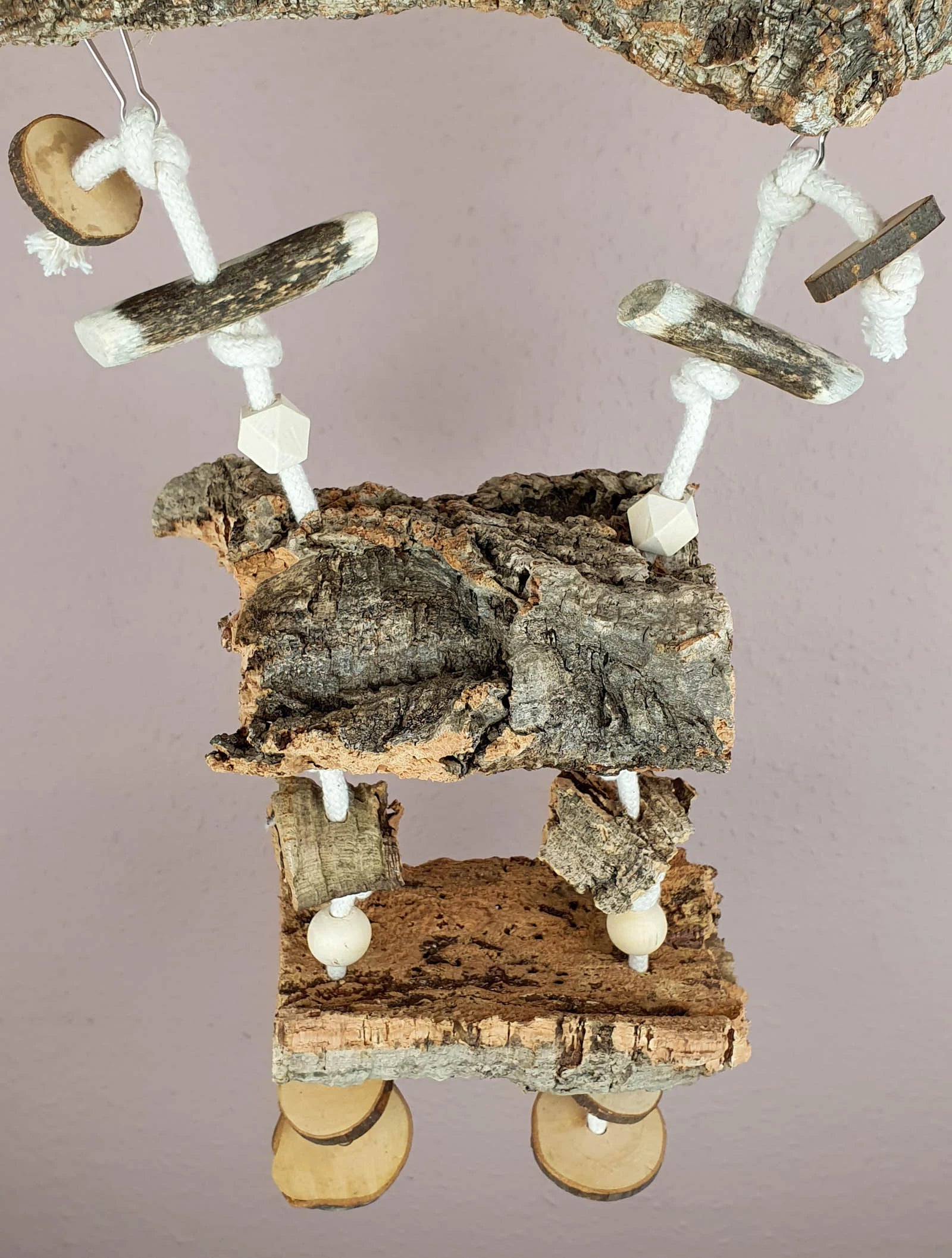 Nager-Schaukel / Vogel-Schaukel mit 2 Kork-Sitzbrettern und Spielzeug 700-780