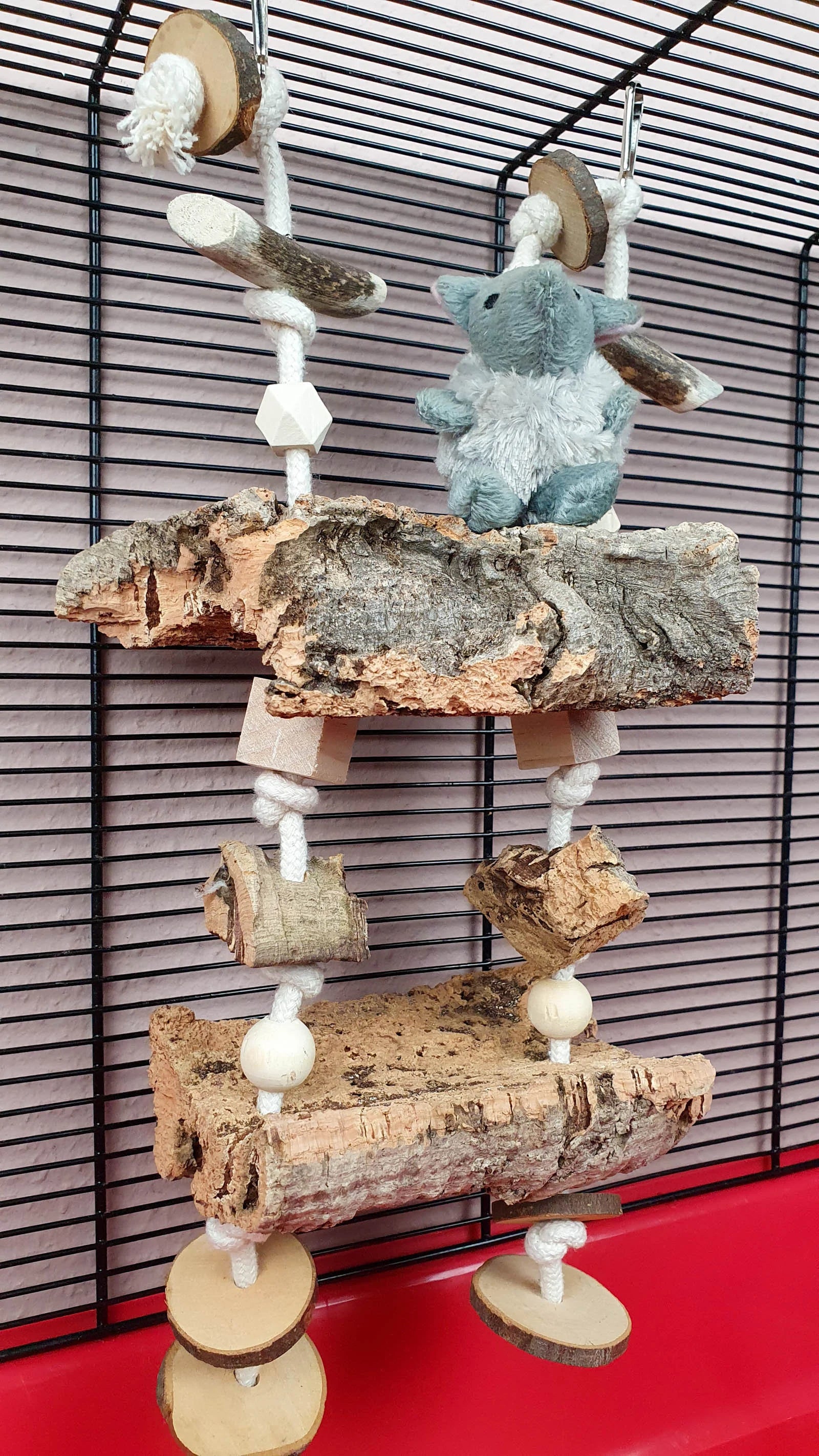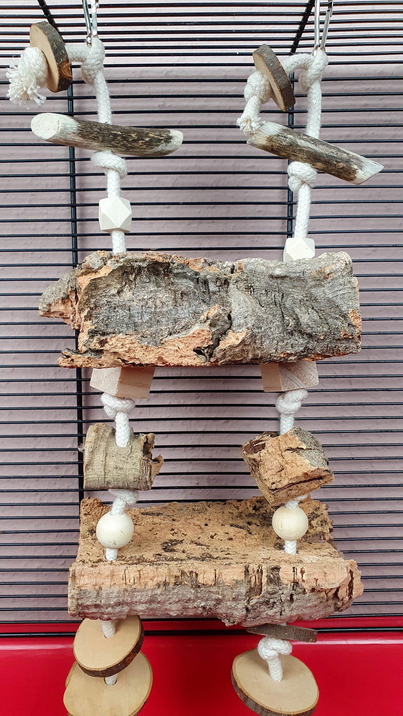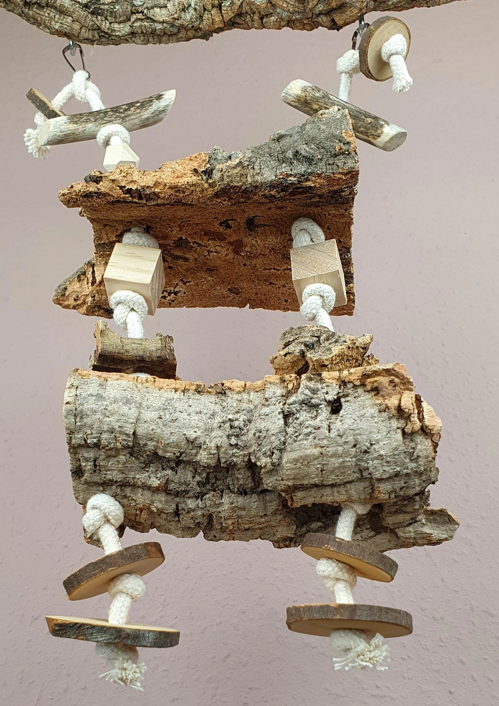 Nager-Schaukel / Vogel-Schaukel mit 2 Kork-Sitzbrettern und Spielzeug 700-780