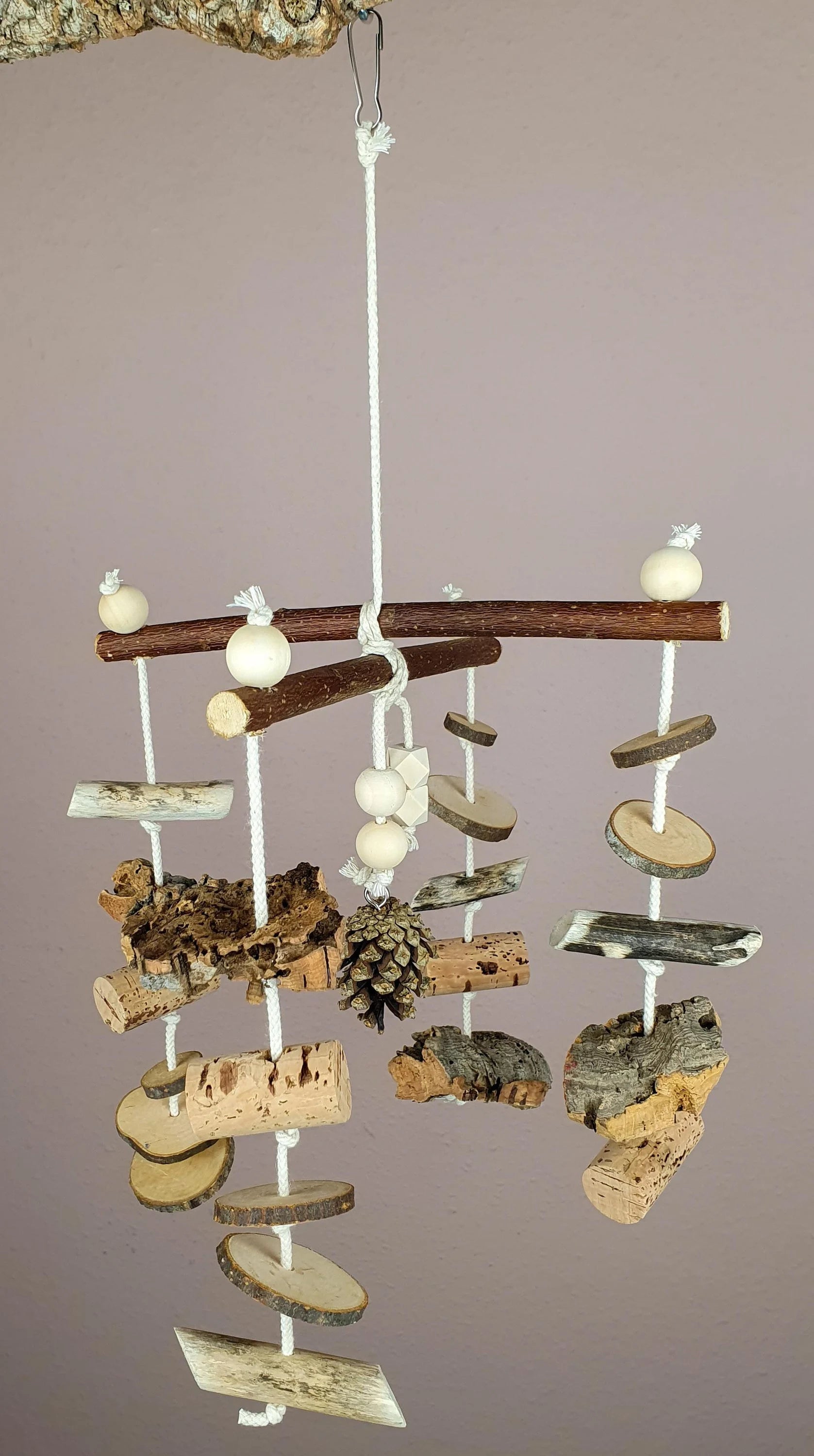Vogelschaukel MOBILE - M Vogelspielzeug aus Natur-Holz & Baumwollseil 700-731