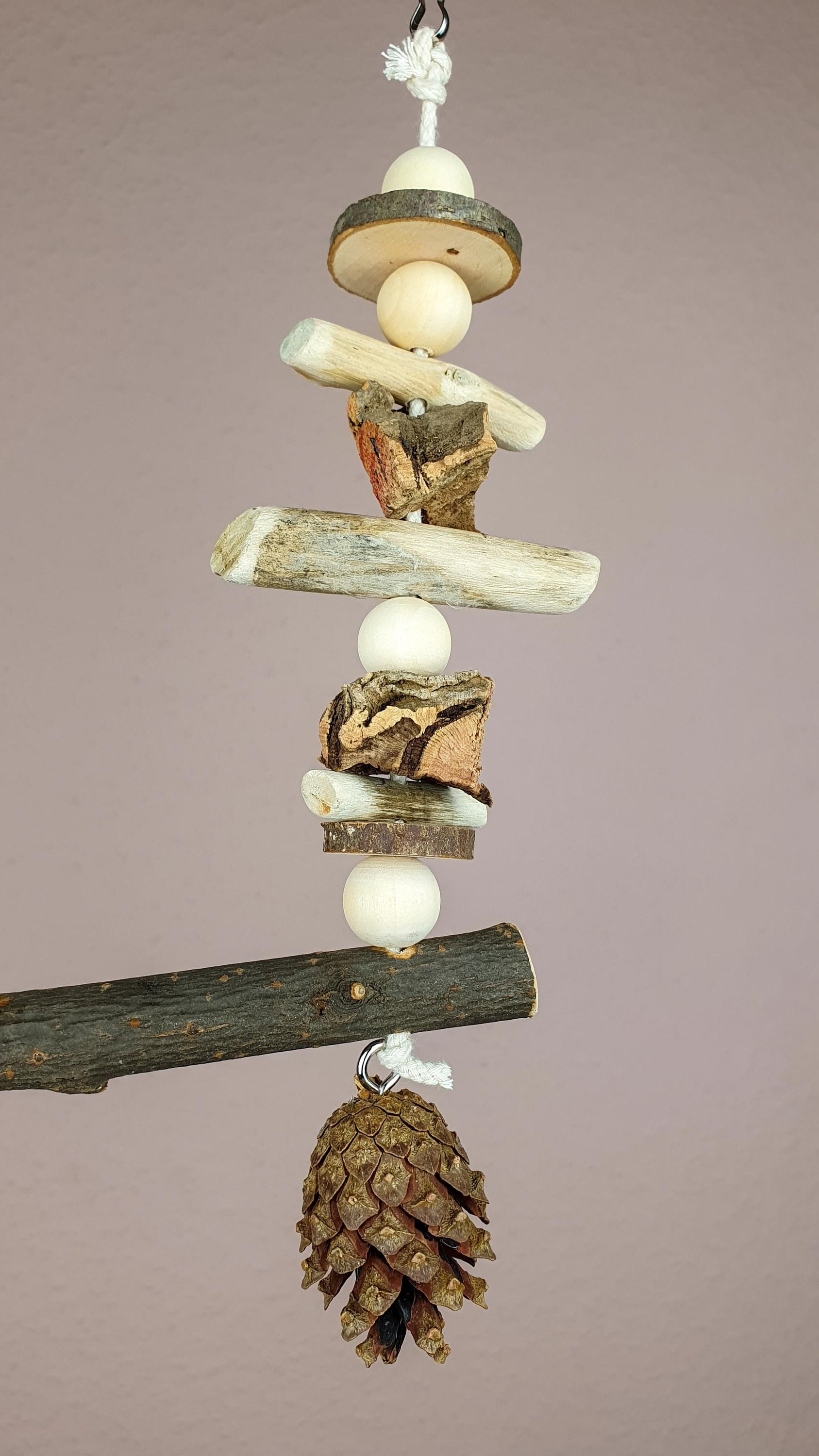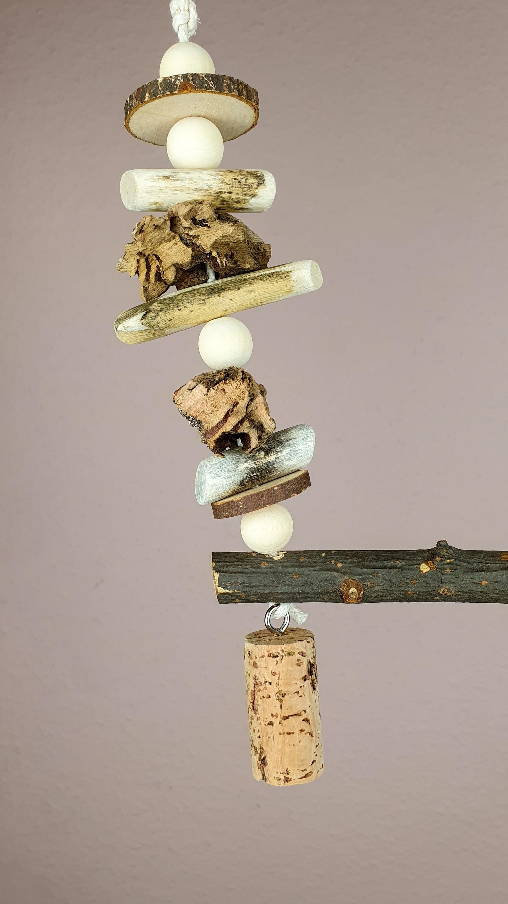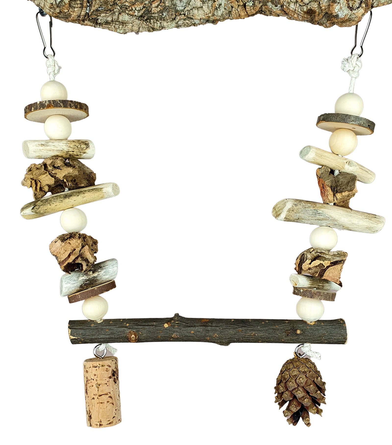 Vogel-Knabber-Schaukel M / Spielzeug aus Naturholz / Korkrinde zum Schreddern 700-725