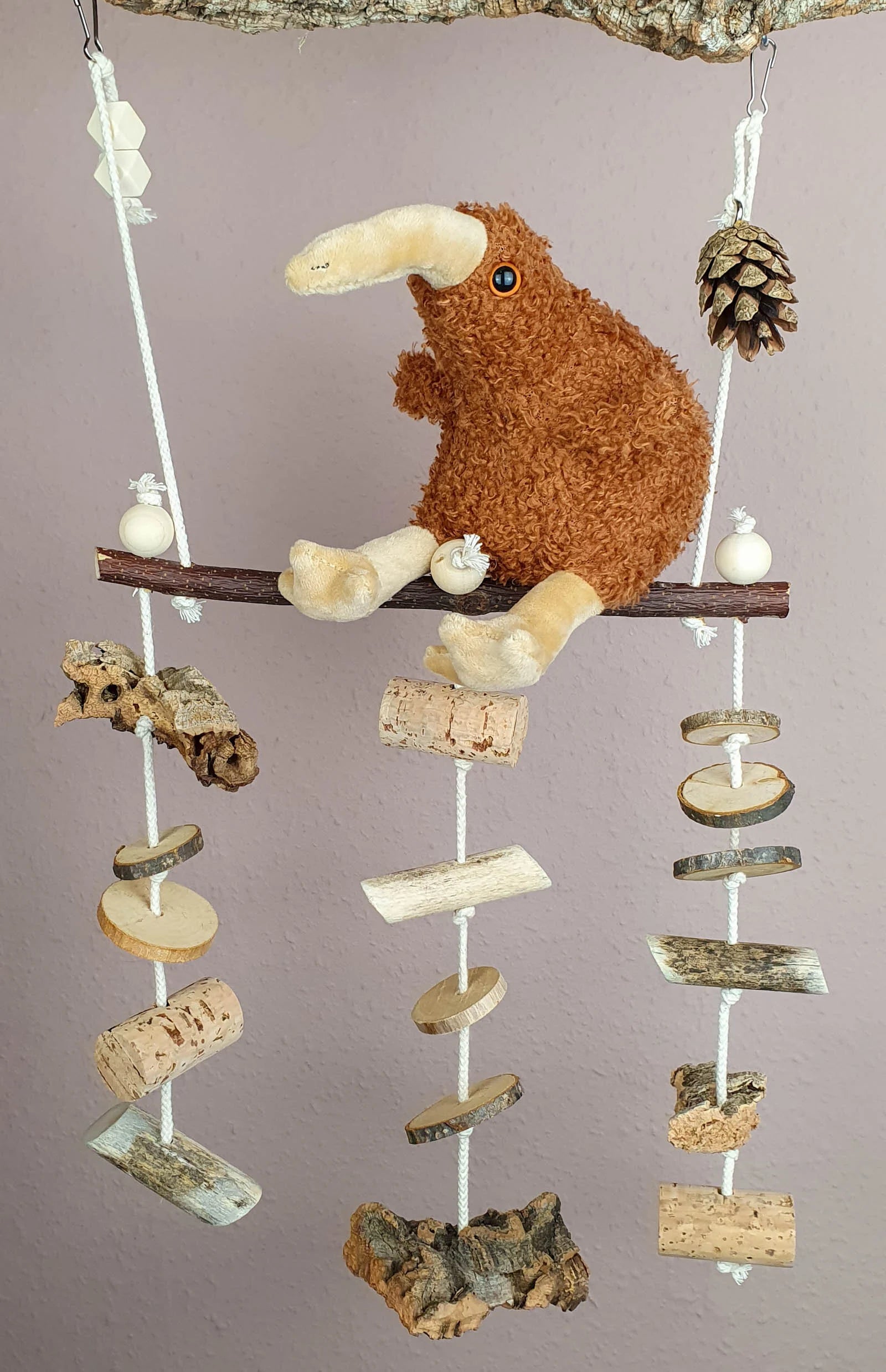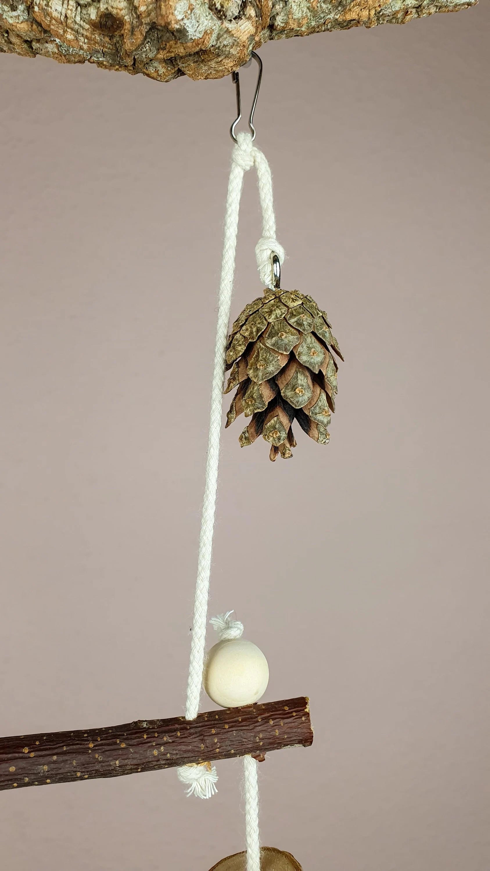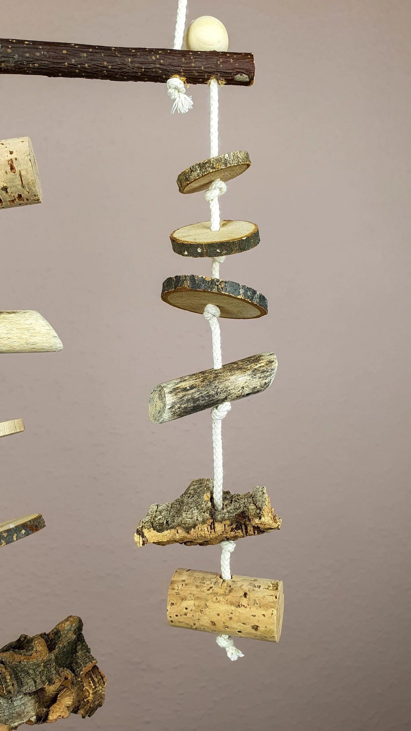 Diese Vogel-Schaukel mit Schredder-Spielzeug wurde in liebevoller Handarbeit hergestellt.