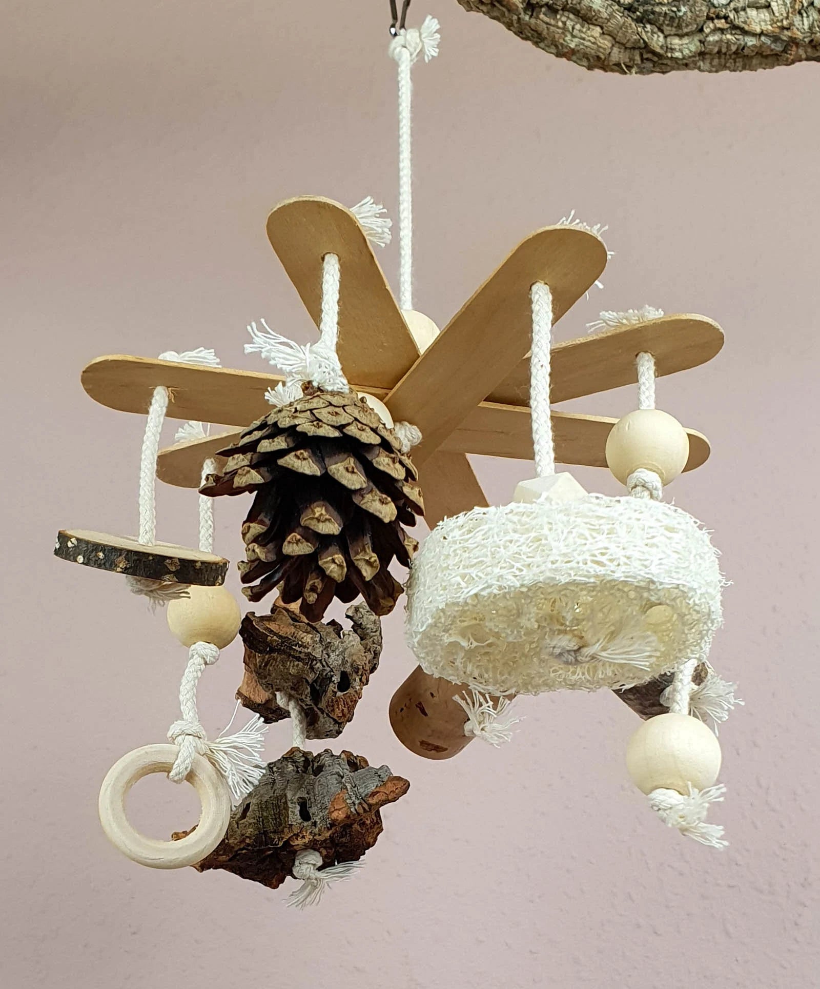 Mit weichem Baumwollseil, geeignet für kleine Sittiche und Nager.