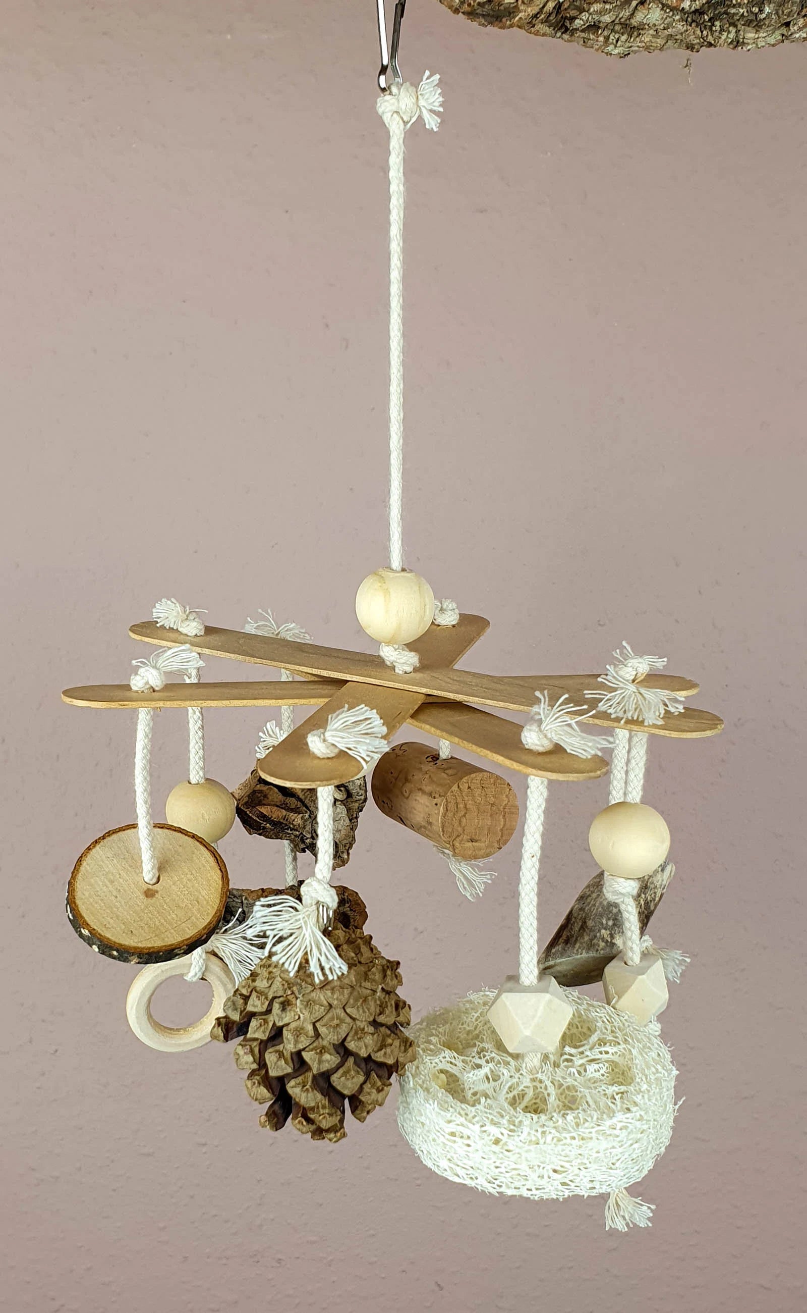 Vogel-Spielzeug / Mobile in Karussell-Form mit Natur-Holz 700-737