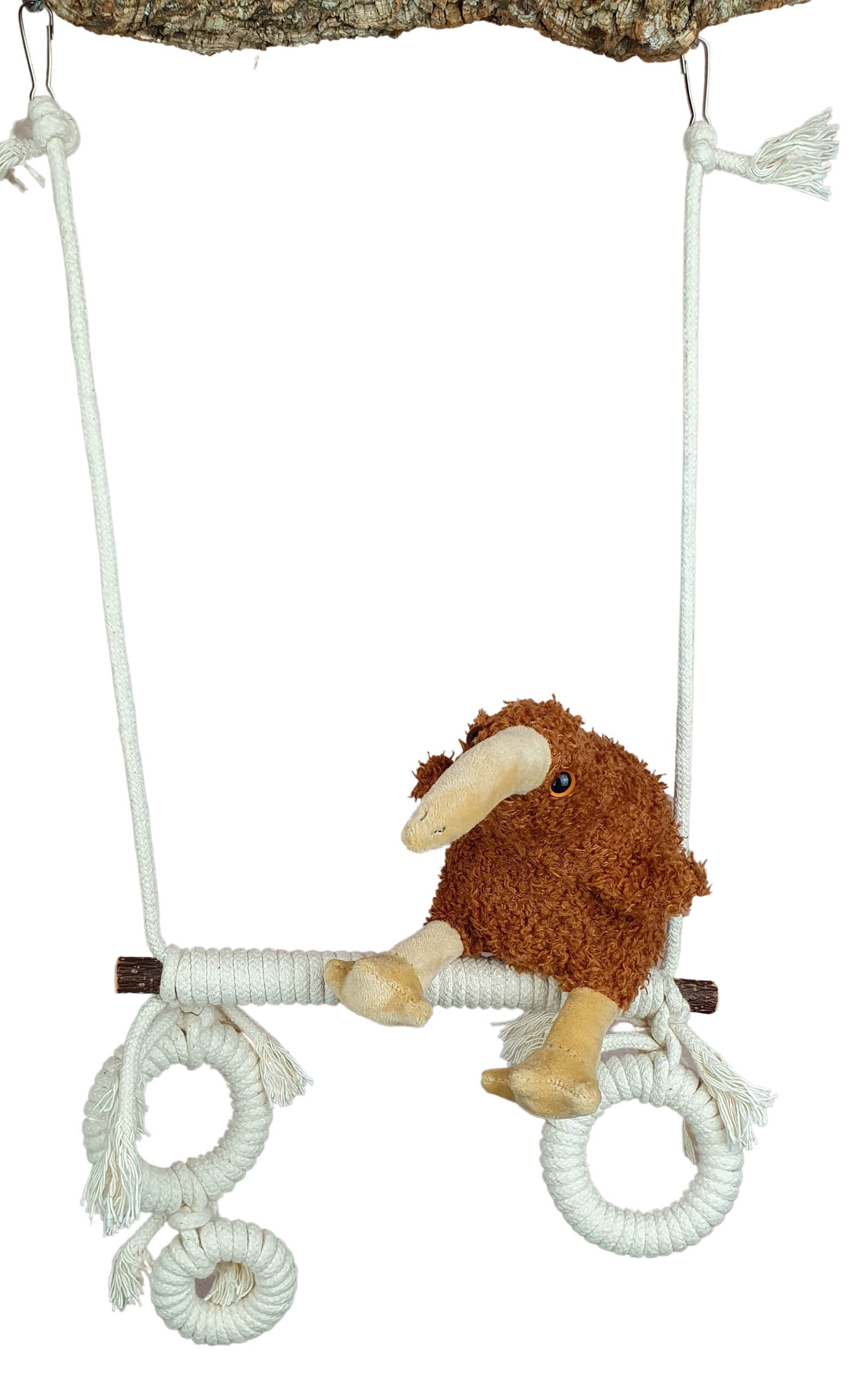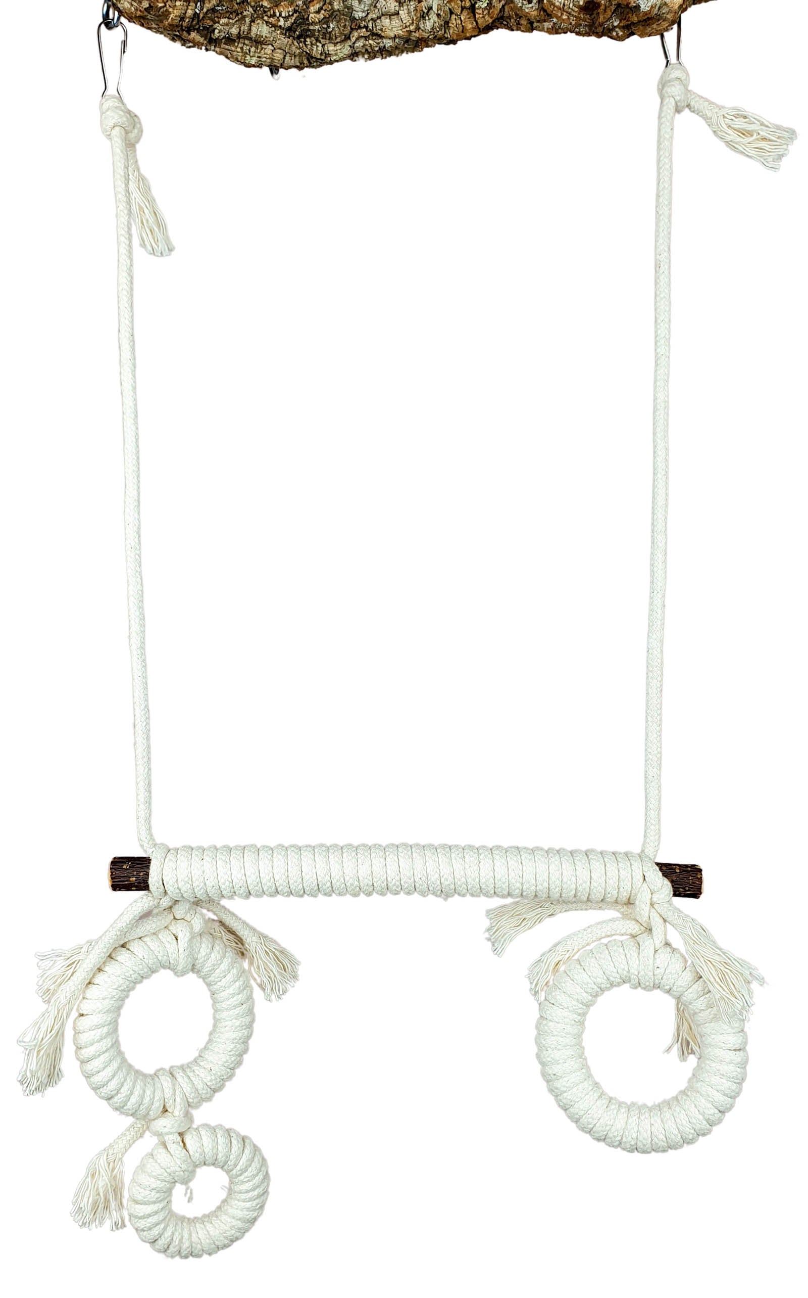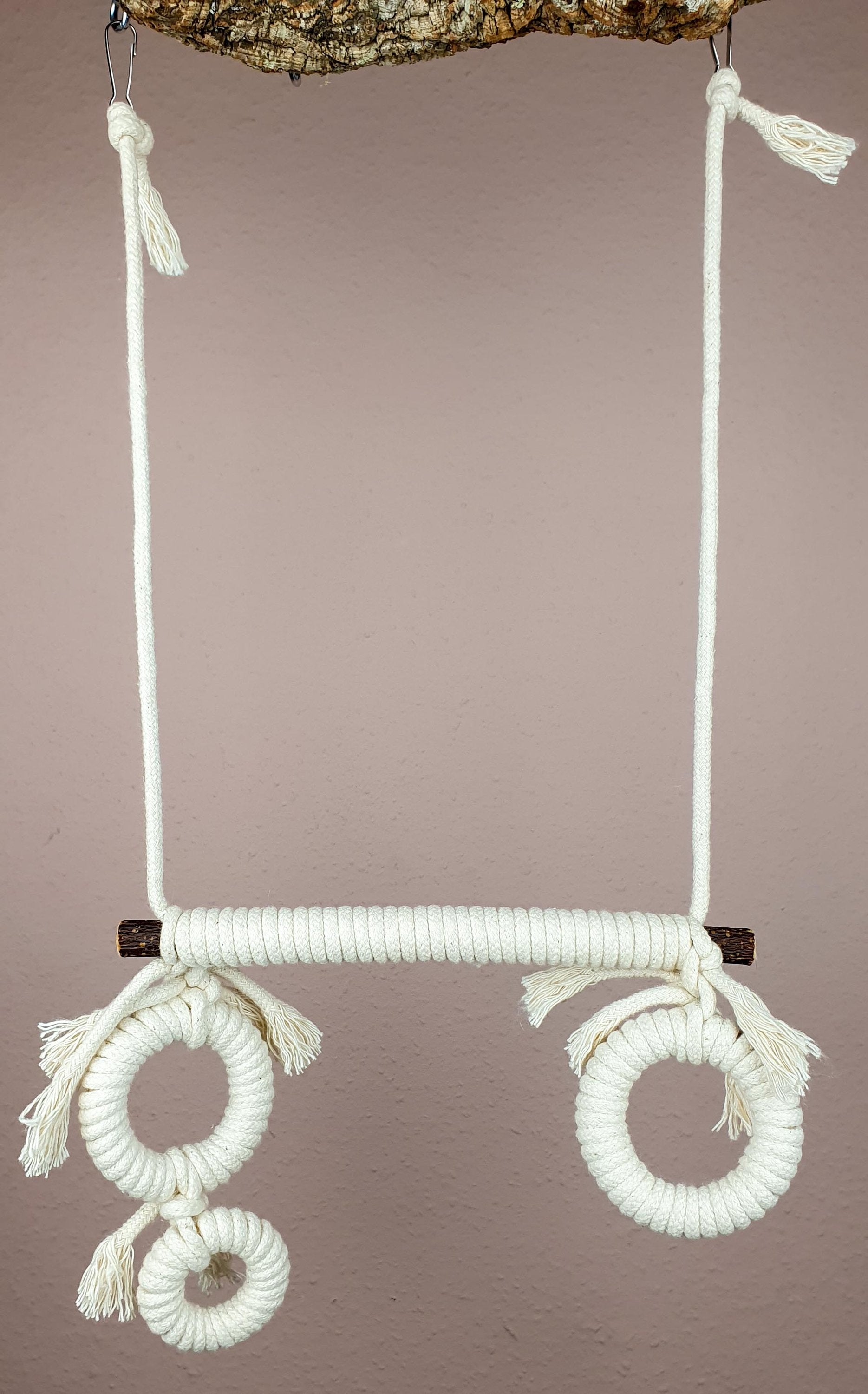 Vogelschaukel / Vogelspielzeug aus Natur-Holz mit Baumwollseil 700-714
