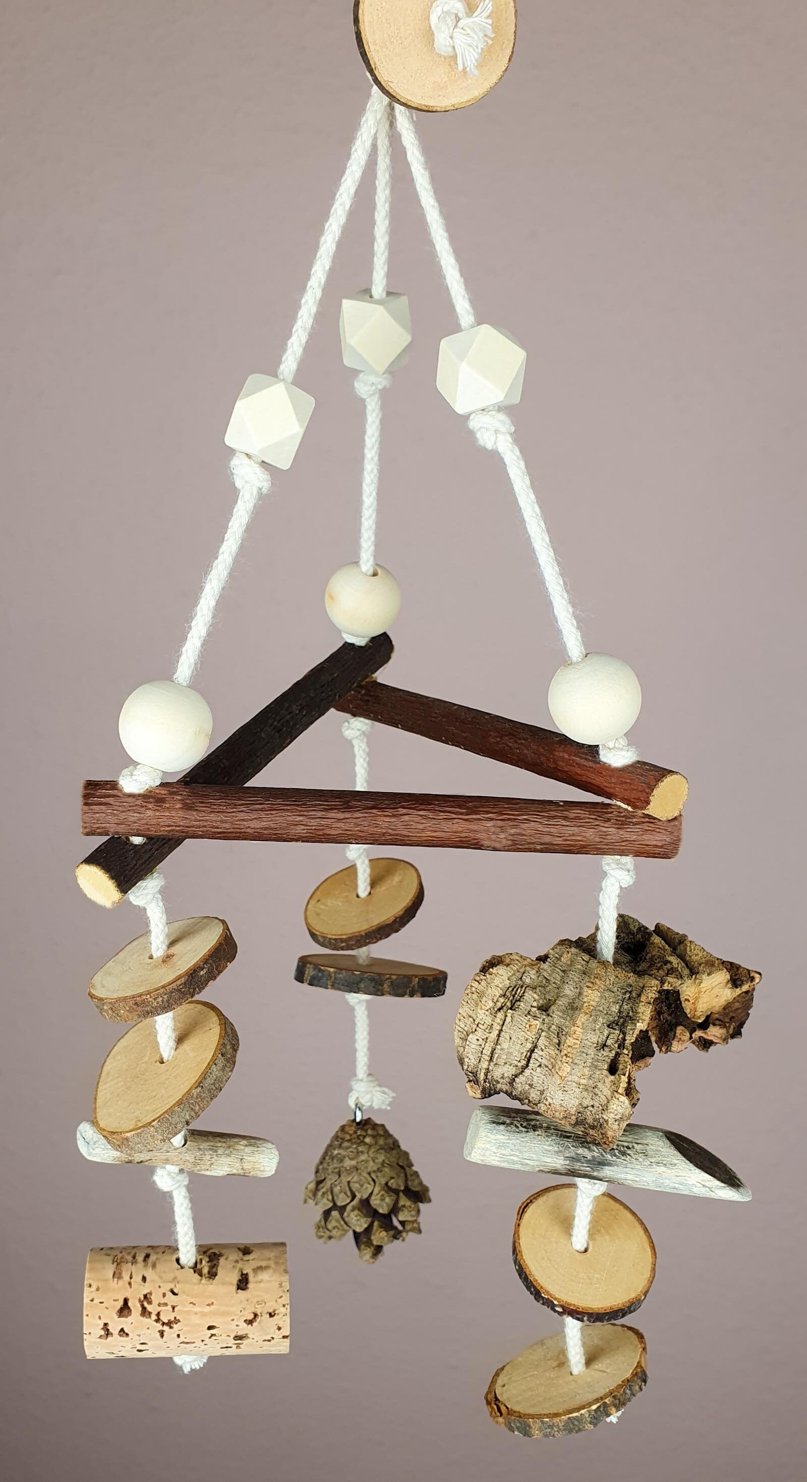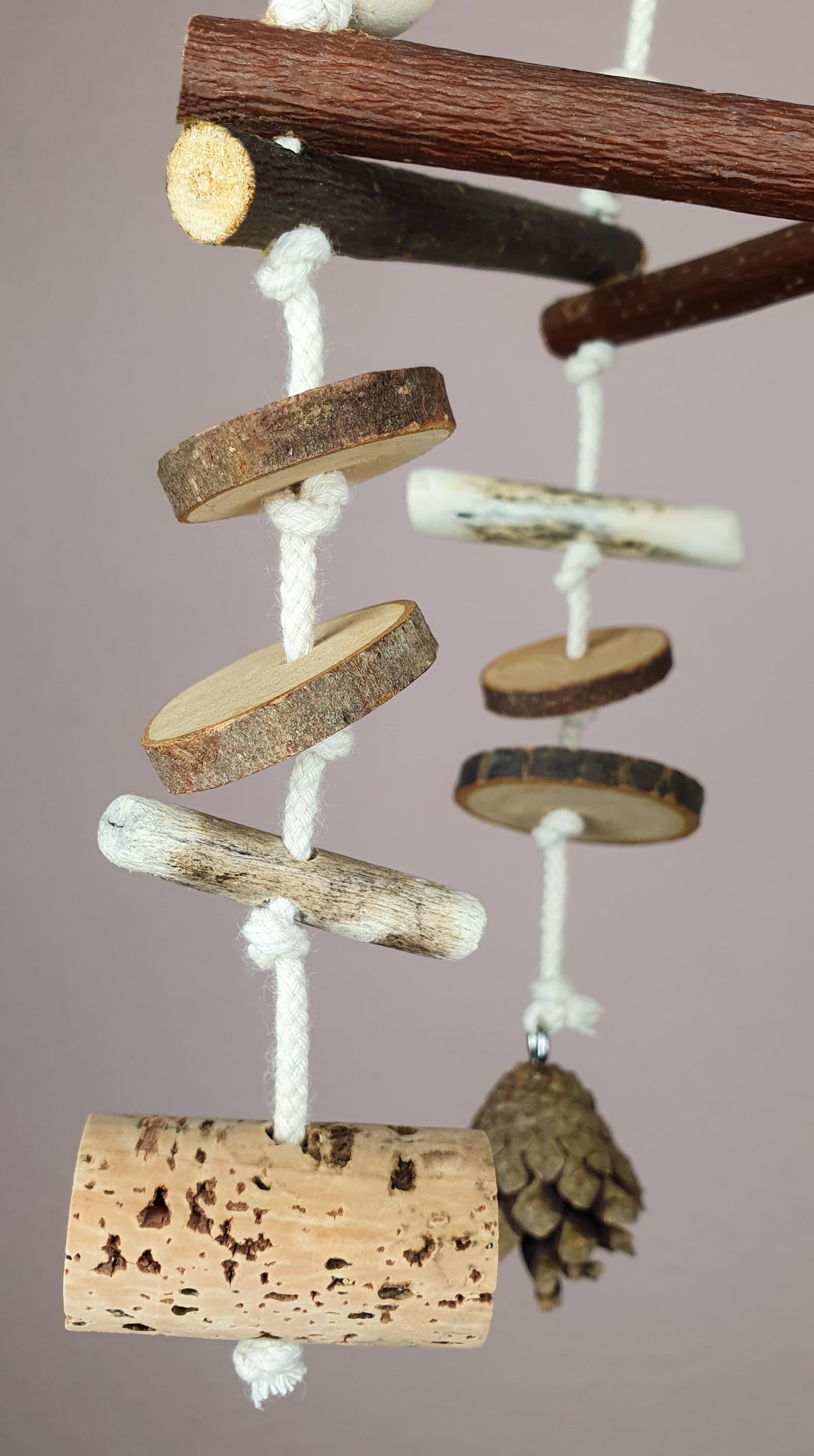 Vogelschaukel Triangel S / Vogelspielzeug aus Natur-Holz zum Knabbern & Baumwollseil - 700-726