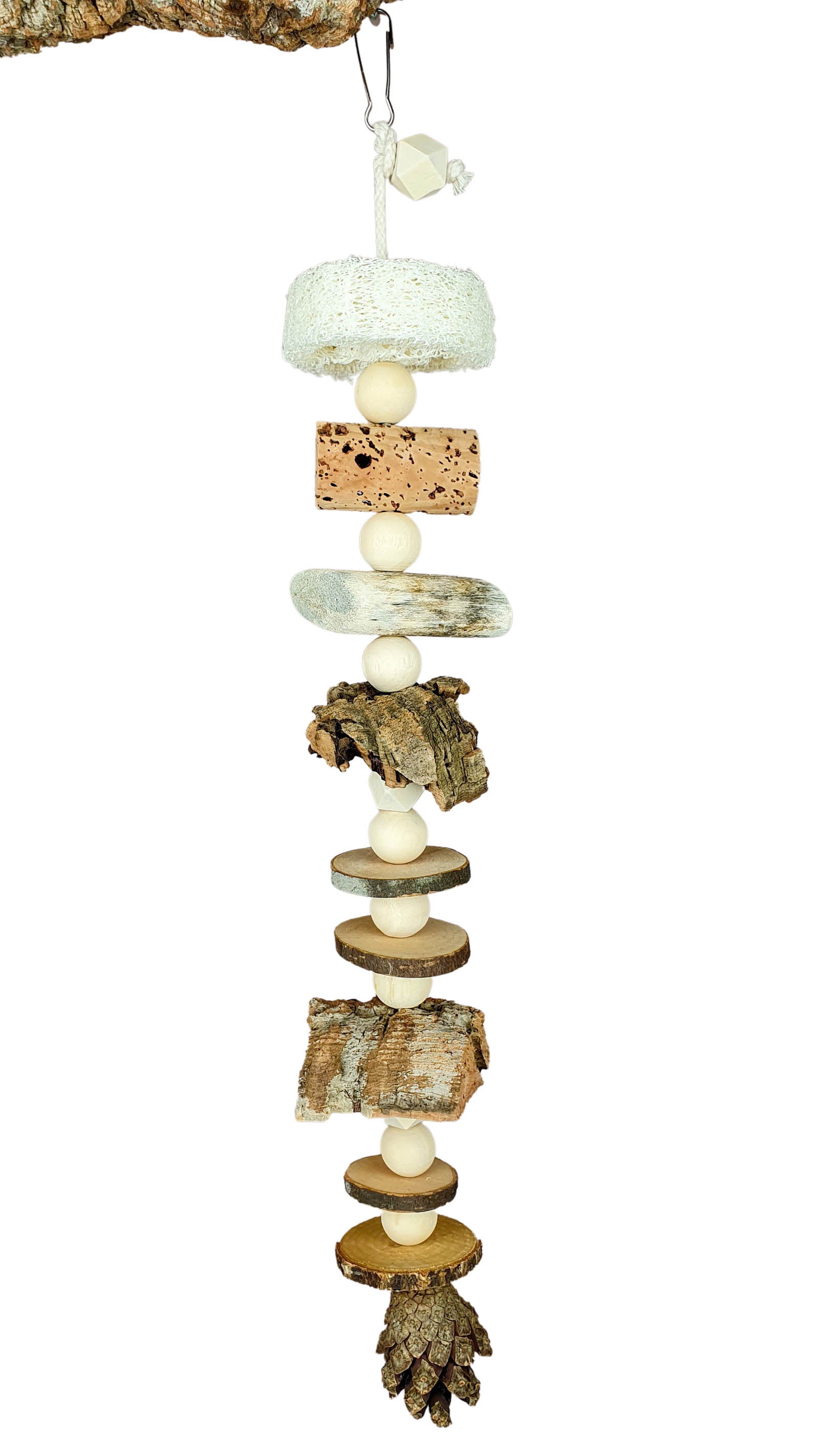 Vogelspielzeug 40 cm aus Natur-Holz zum Knabbern / Handarbeit 700-707
