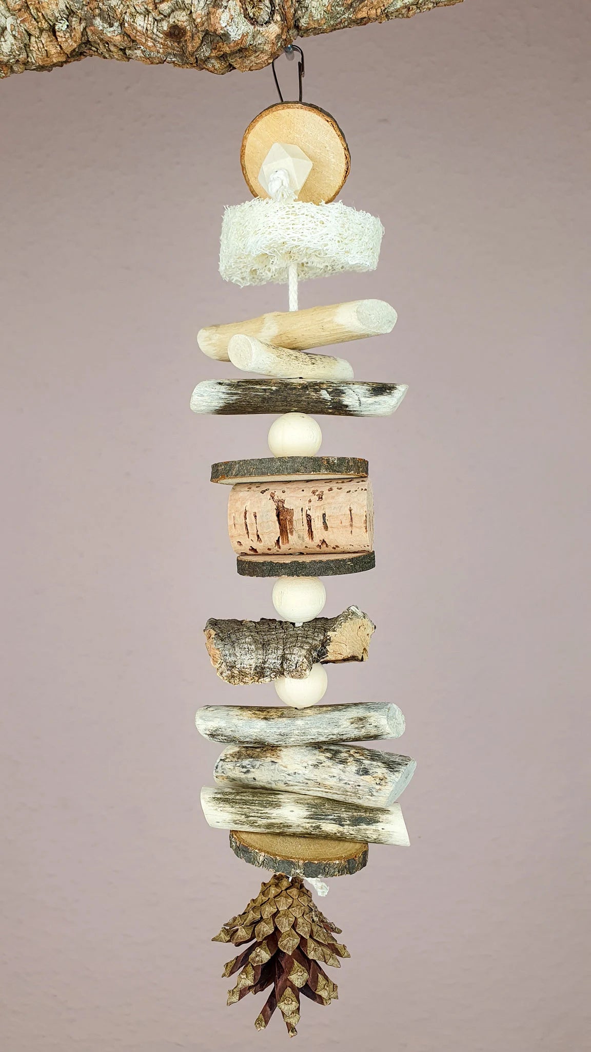 Vogelspielzeug S aus Naturholz für Knabber-Spaß /