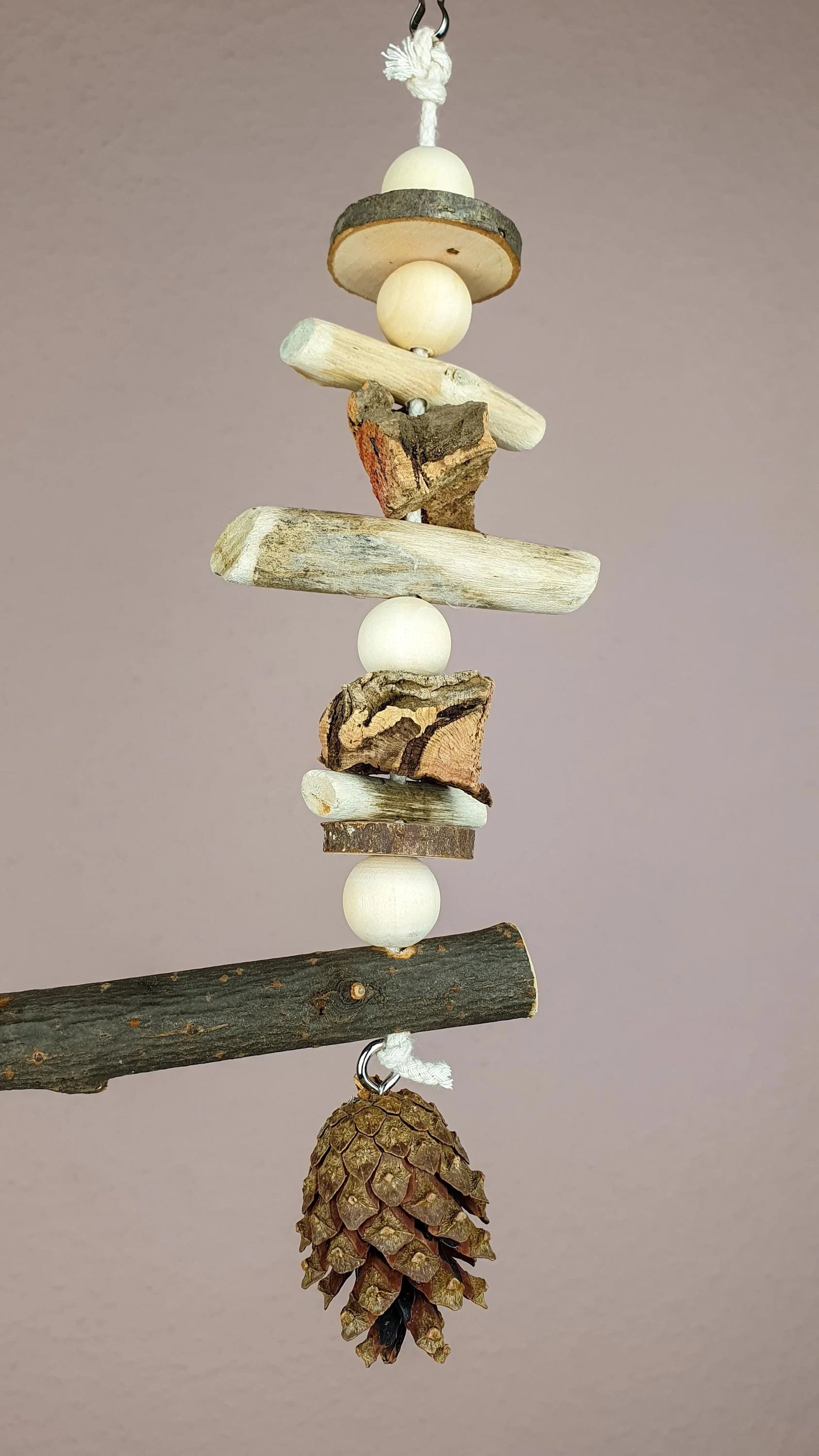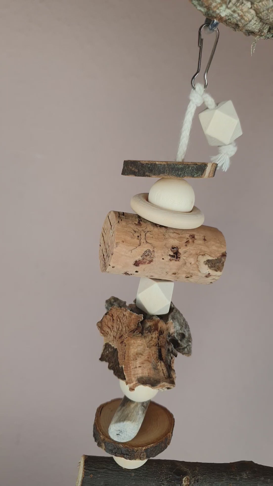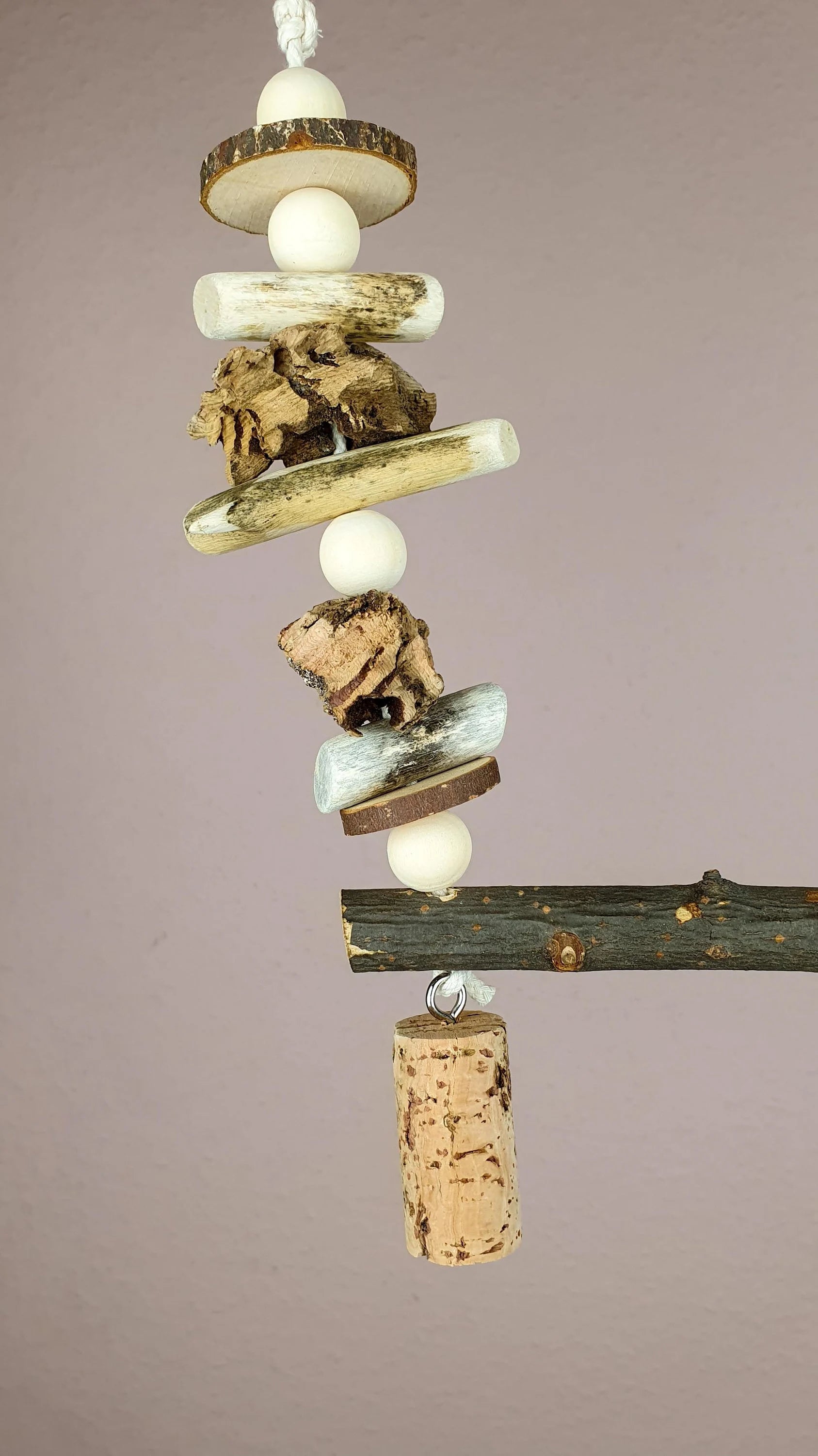 Vogel-Knabber-Schaukel S / Spielzeug aus Naturholz / Korkrinde zum Schreddern 700-724