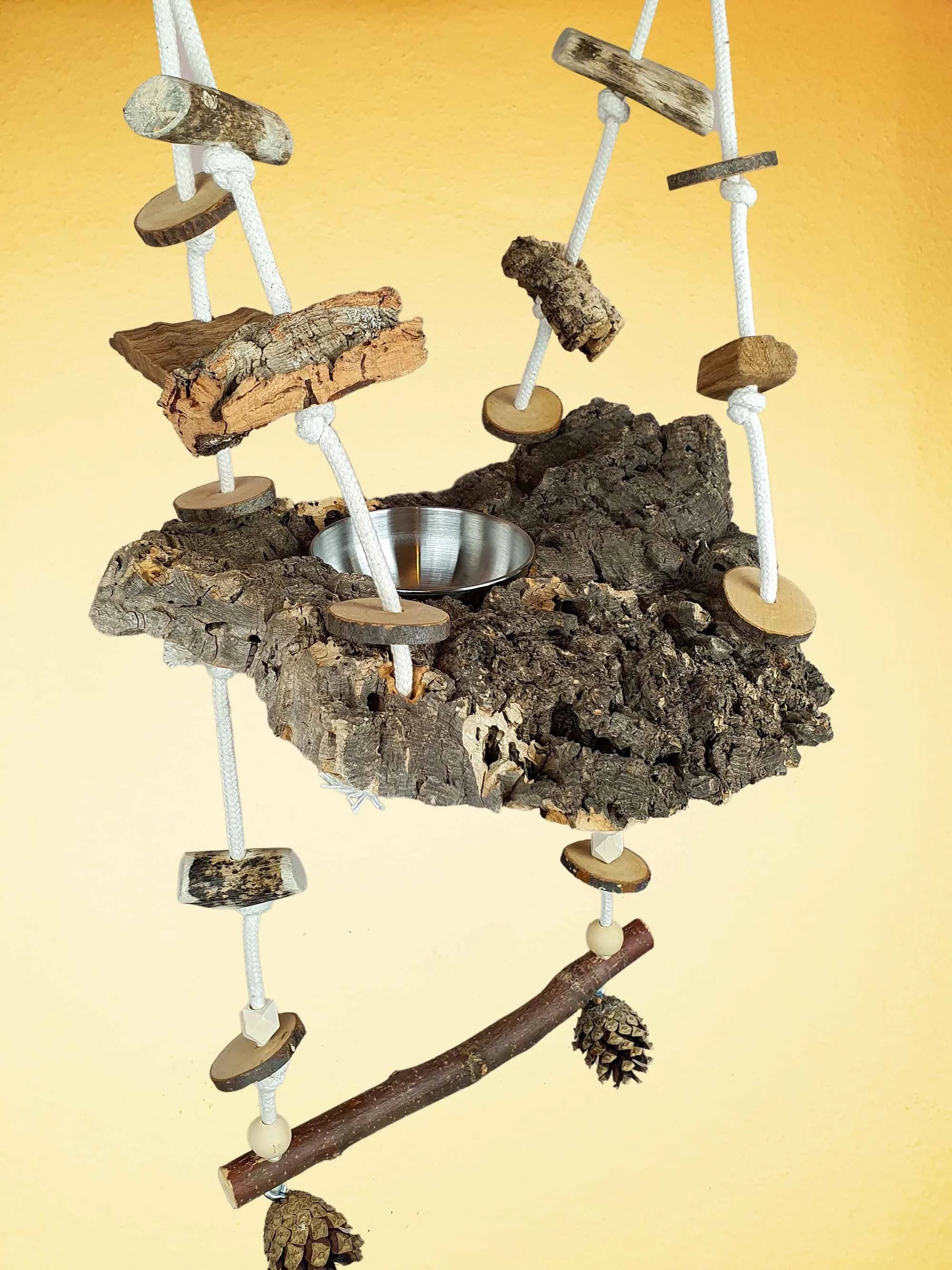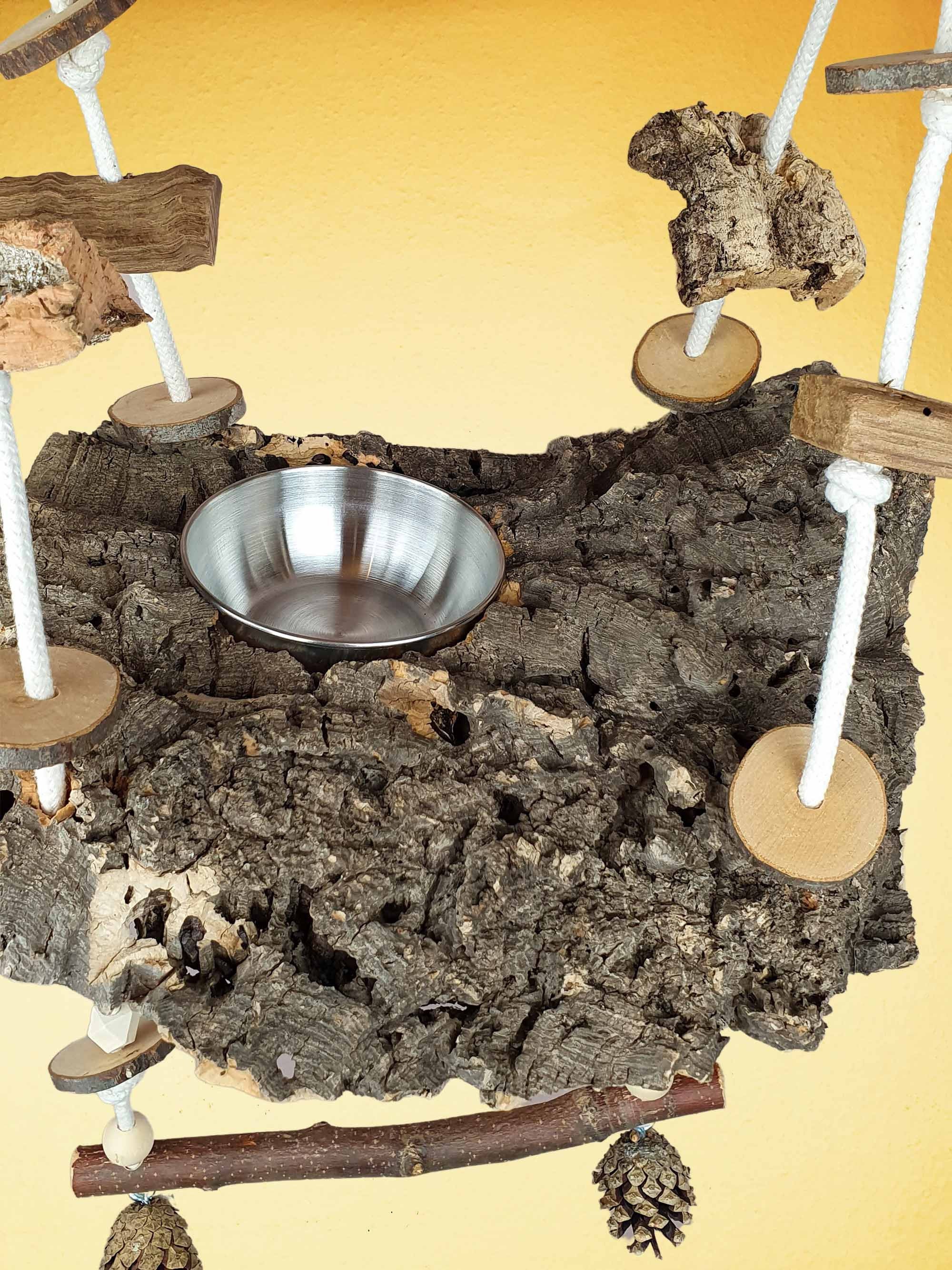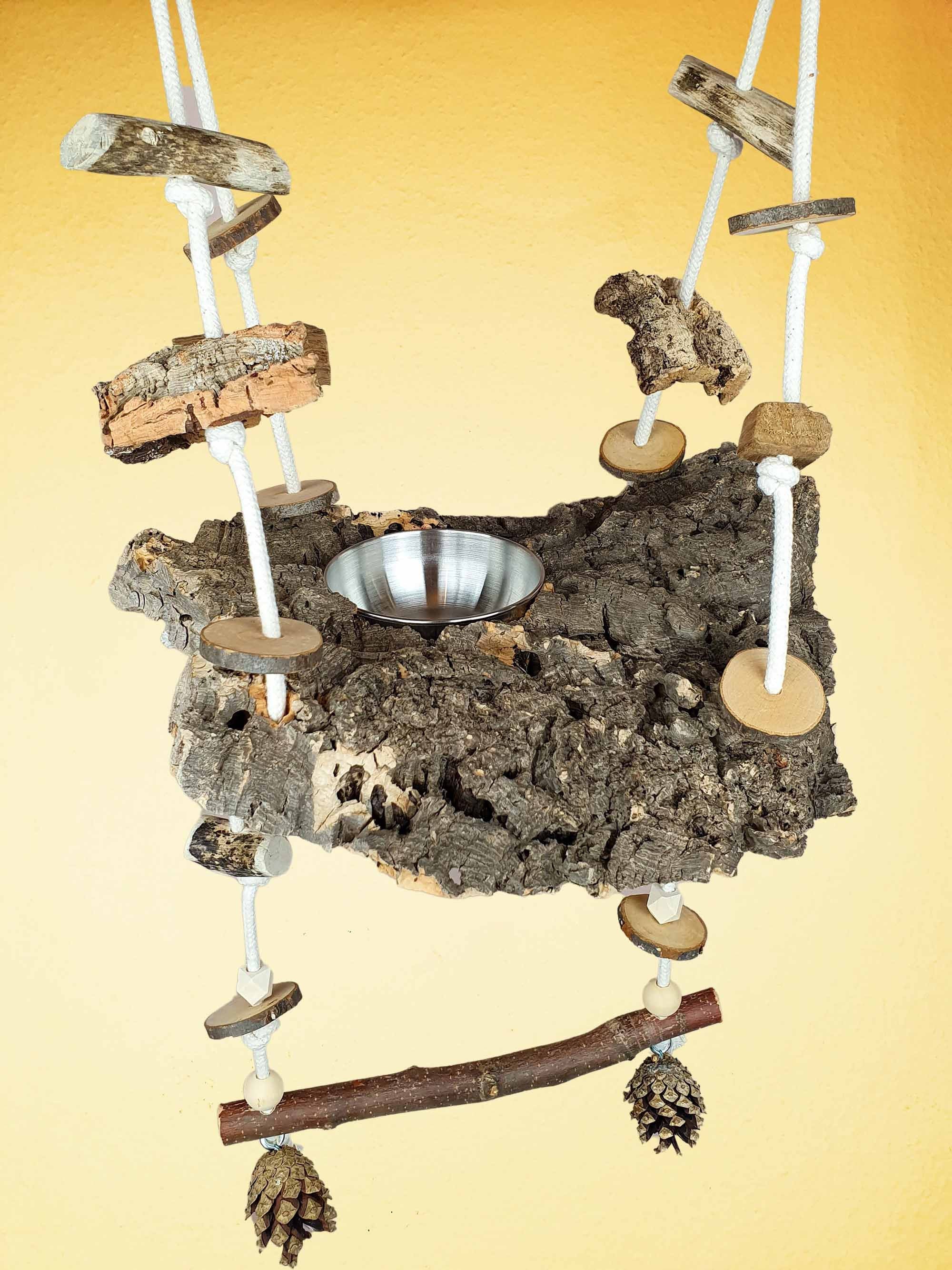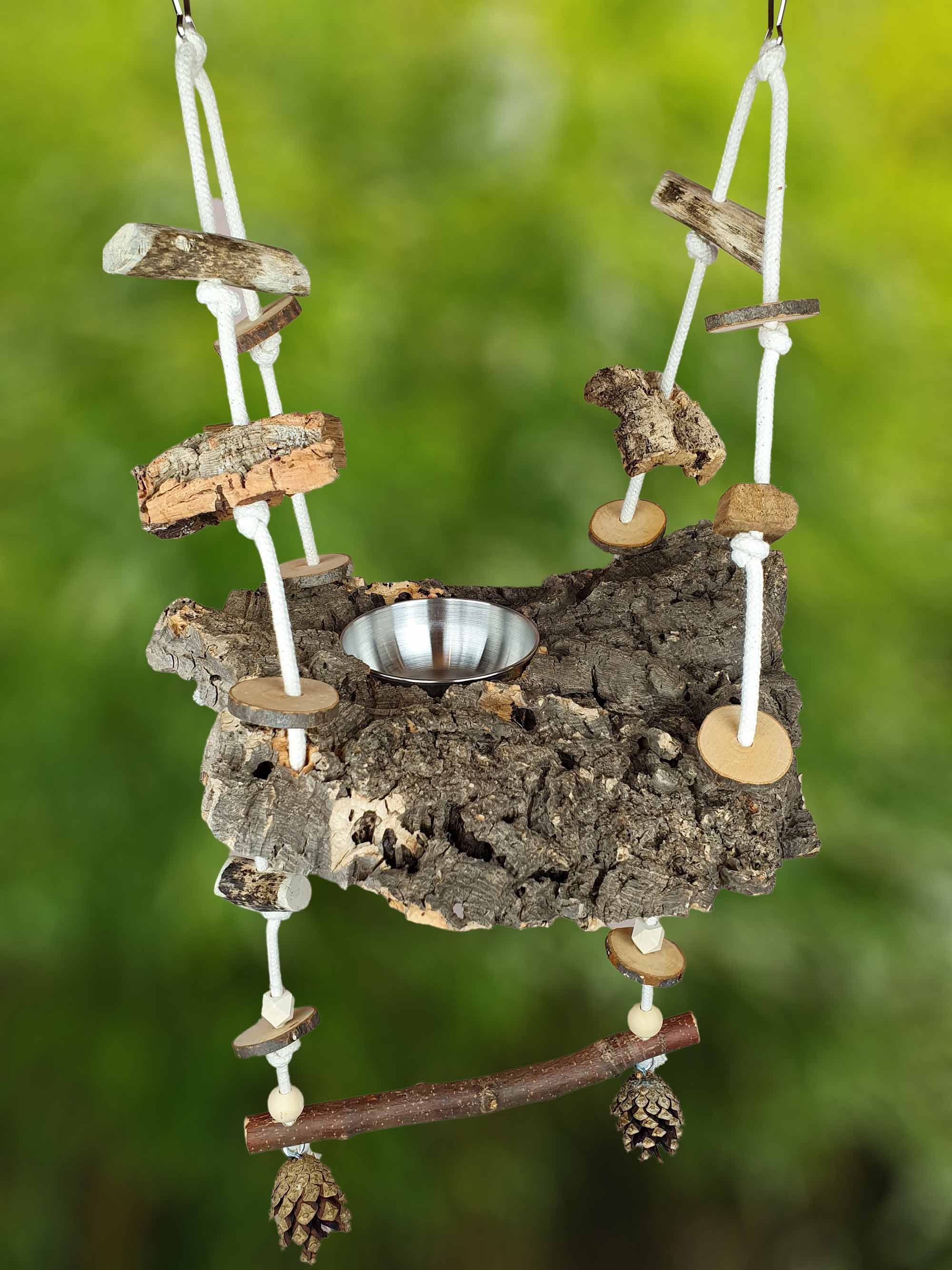 Vogelschaukel / Kork-Schaukel XL / Sitz-Brett mit Snack-Schale, Sitz-Ast und Spielzeug 700-790
