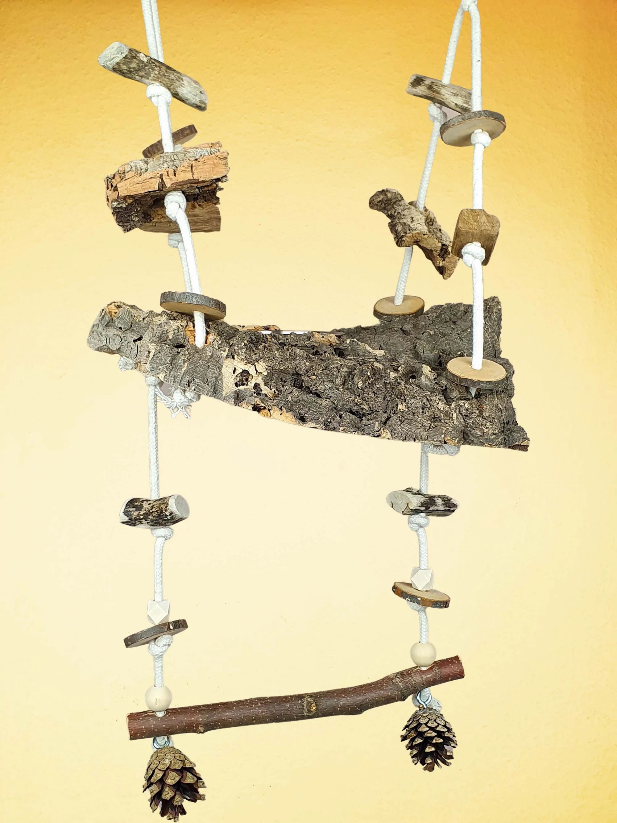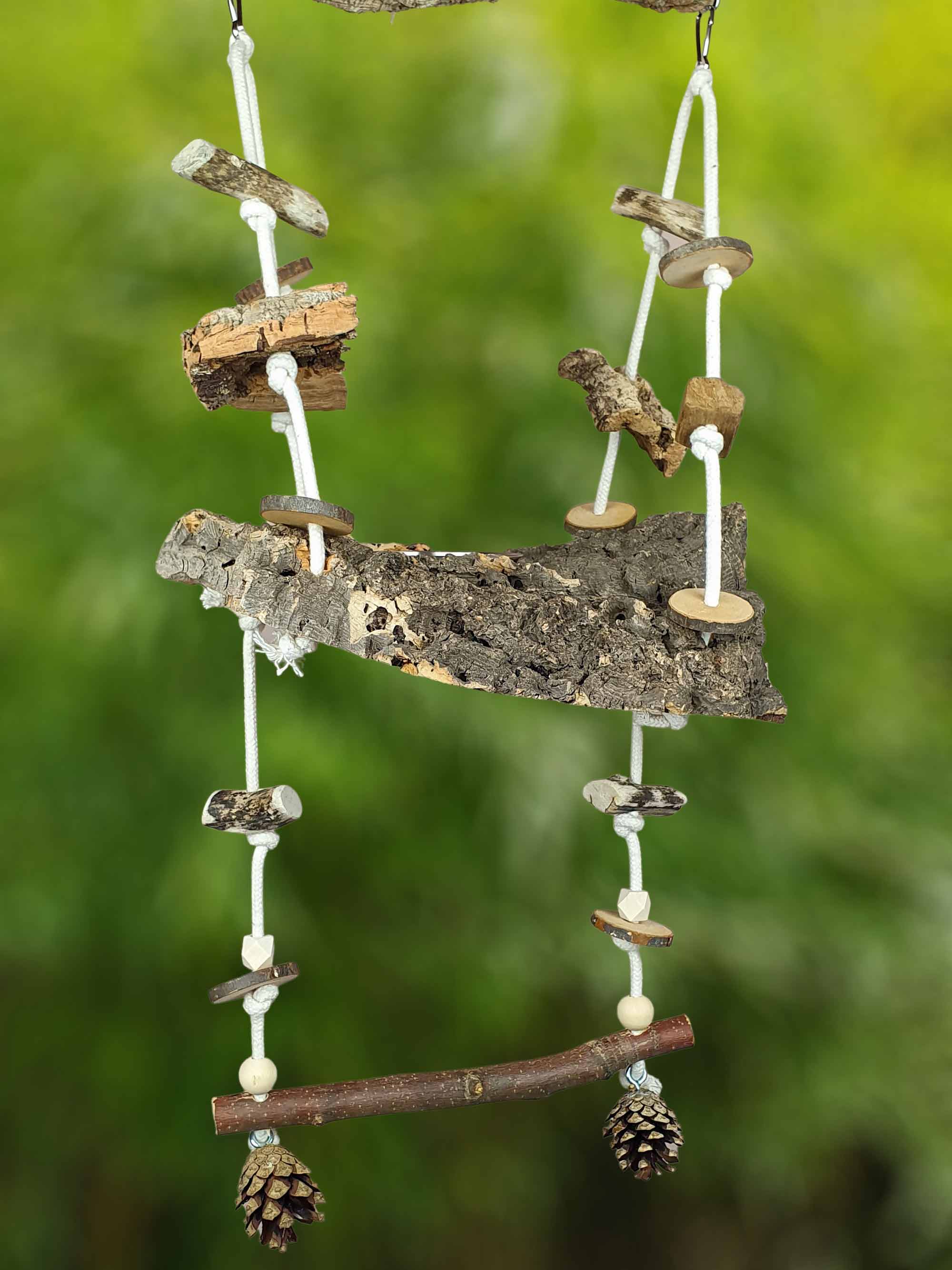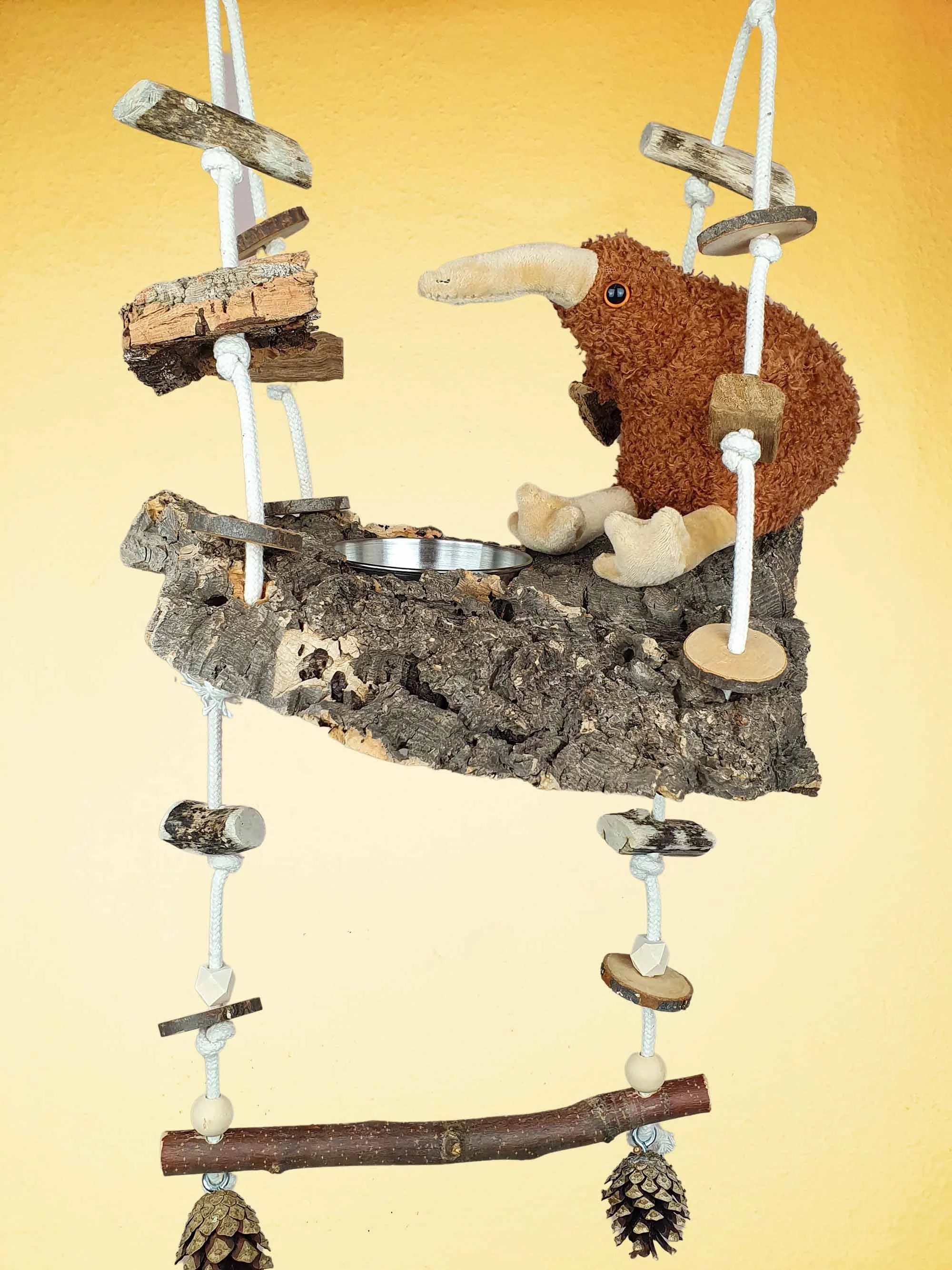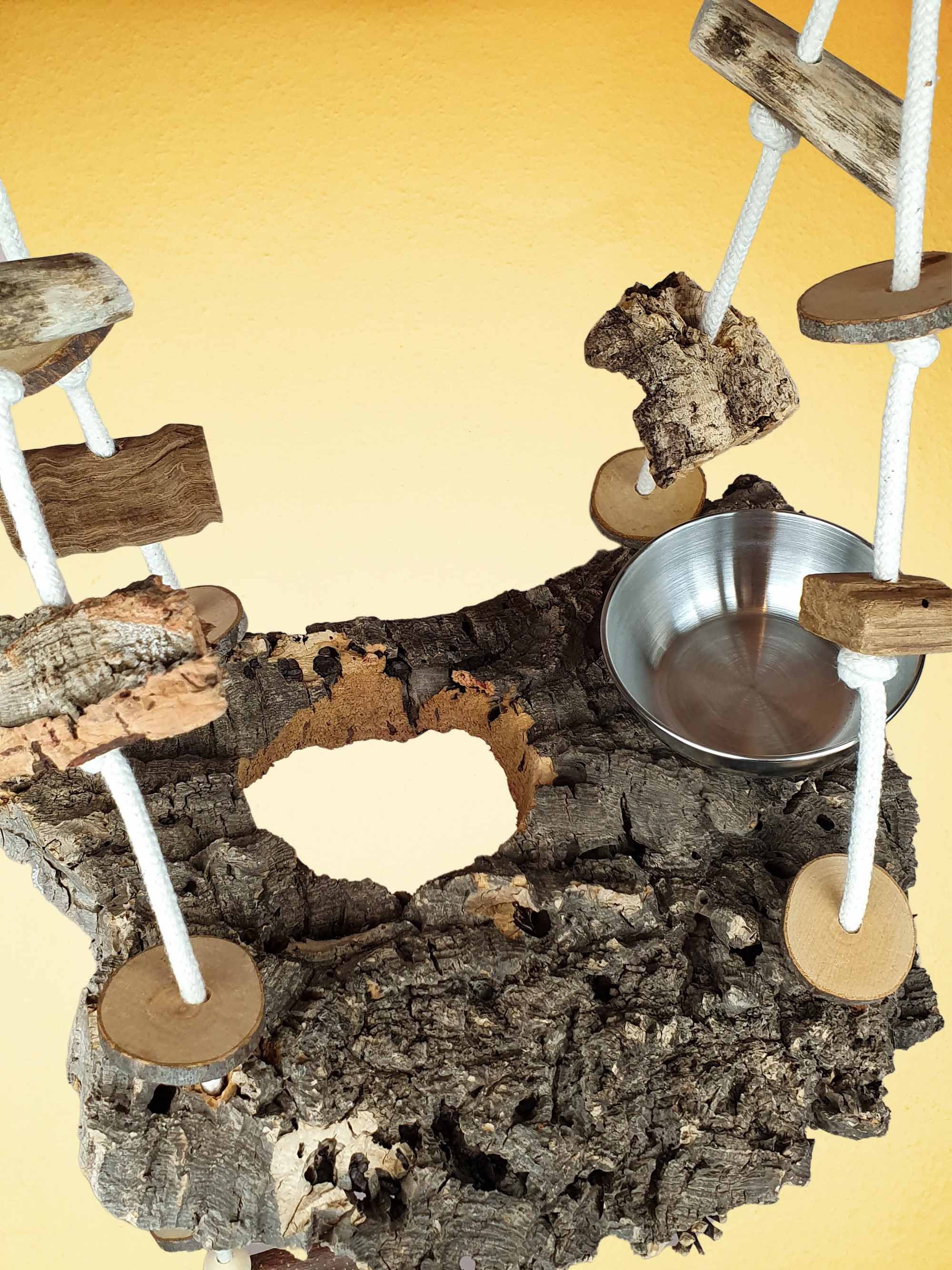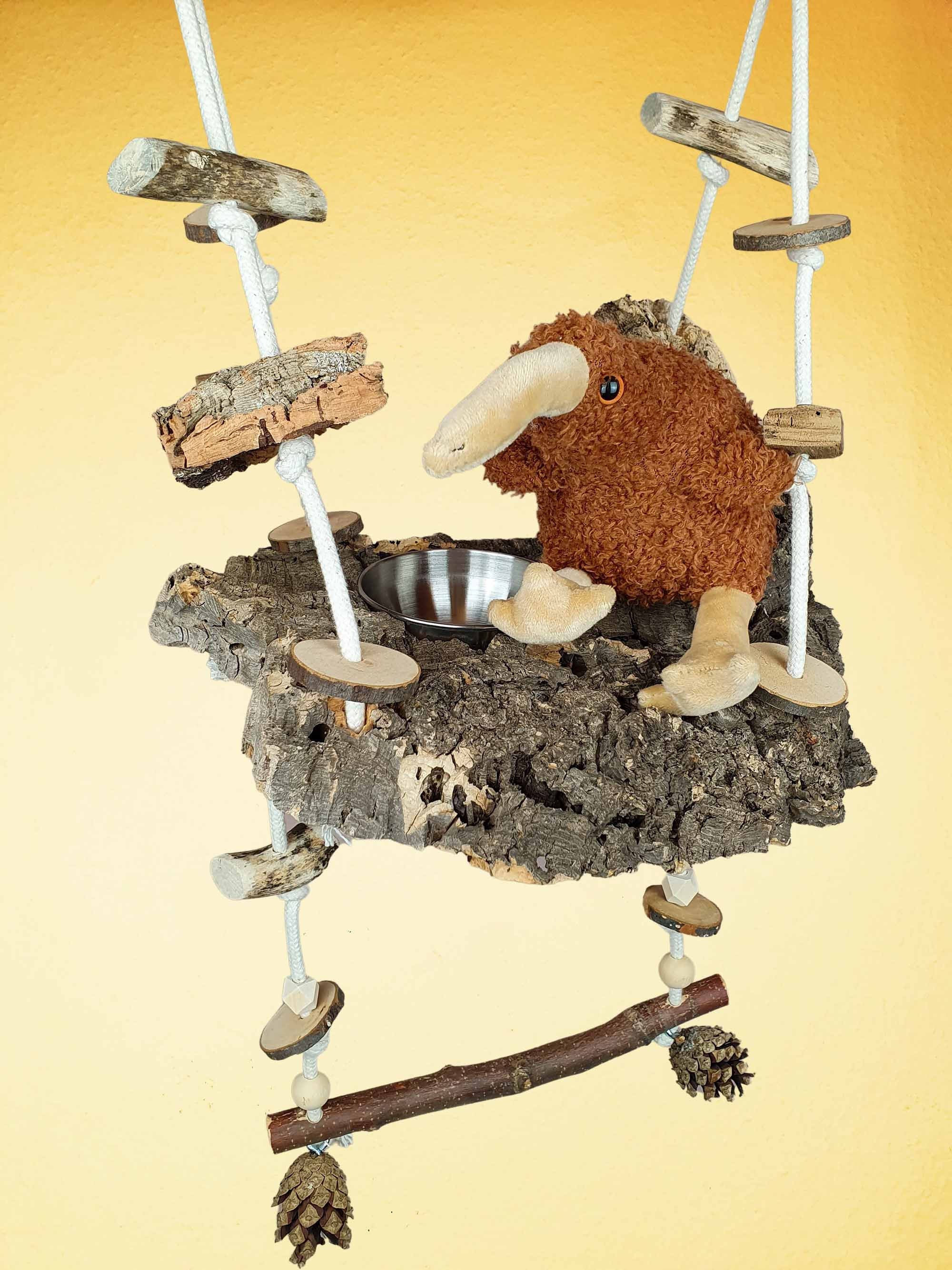 Vogelschaukel / Kork-Schaukel XL / Sitz-Brett mit Snack-Schale, Sitz-Ast und Spielzeug 700-790